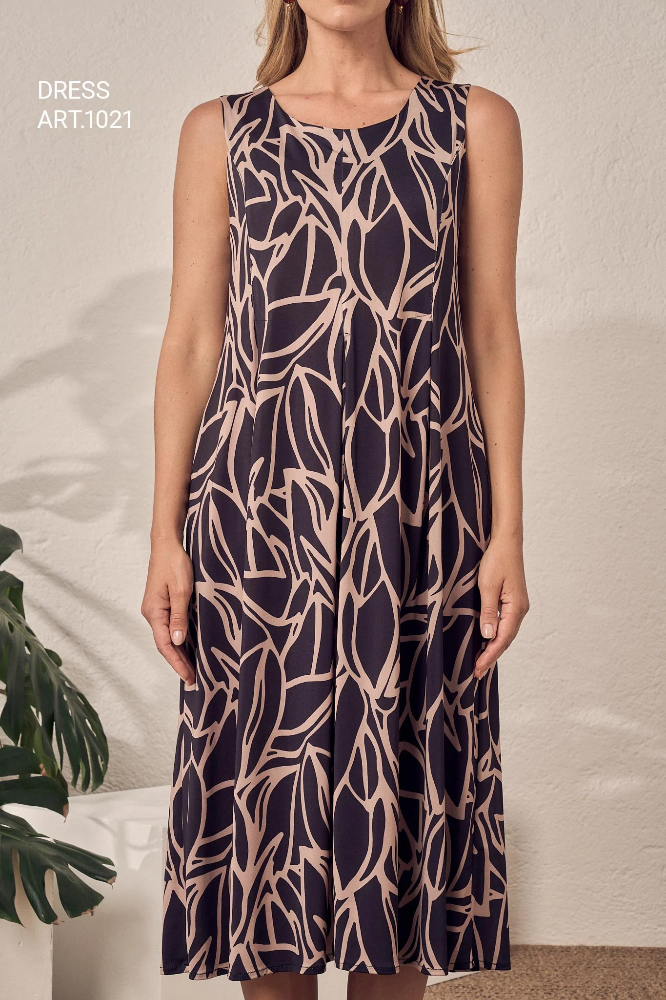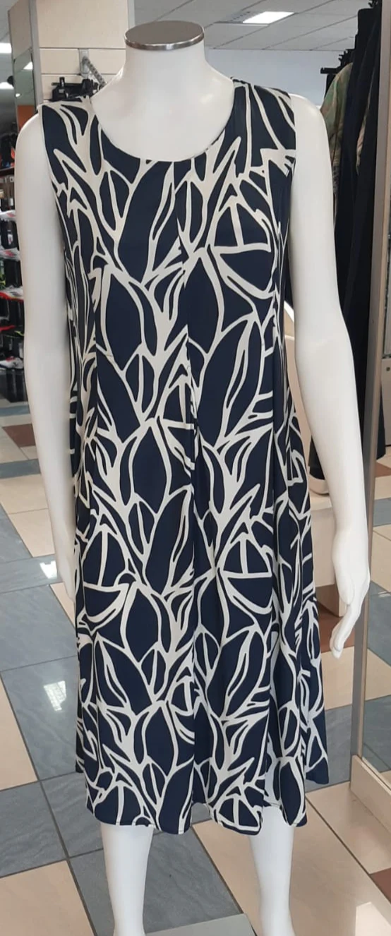 ABITO FANTASIA FOLIAGE JERSEY LUCIDO NERO COMPOSIZIONE: 50,00 % viscose – 7,00 % elastan – 43,00 % polyester ART 1021 OREGON NERO E BLU