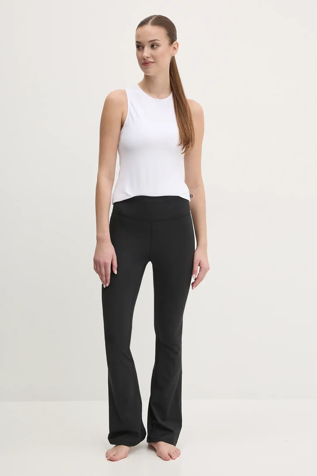 – Il bordo superiore è rifinito con un’ampia fascia in vita che modella il corpo e fornisce un sostegno aggiuntivo durante l’esercizio fisico.