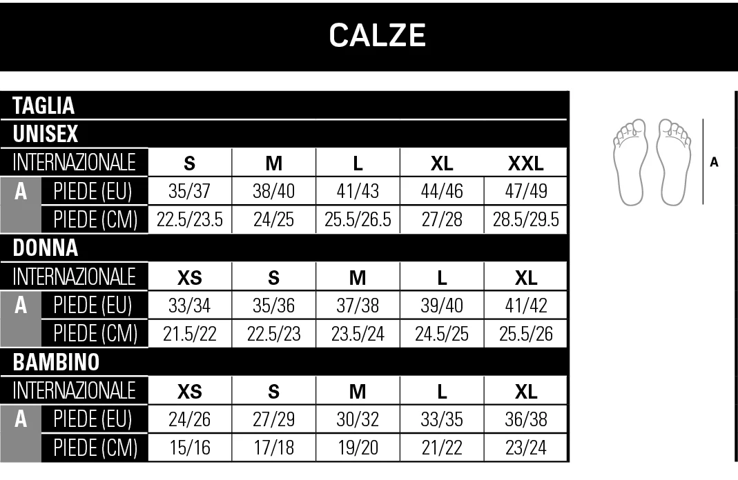 MAGLIA IN LANA + FIBRA LYCRA® – SOLETTA E RINFORZI FRONTALI CON STRUTTURA DI SPUGNA IN LANA – FASCE ELASTICHE ALLA CAVIGLIA E NELL’ARCO PLANTARE – INSERTI LATERALI CON LAVORAZIONE A RETE PER MAGGIORE TRASPIRAZIONE