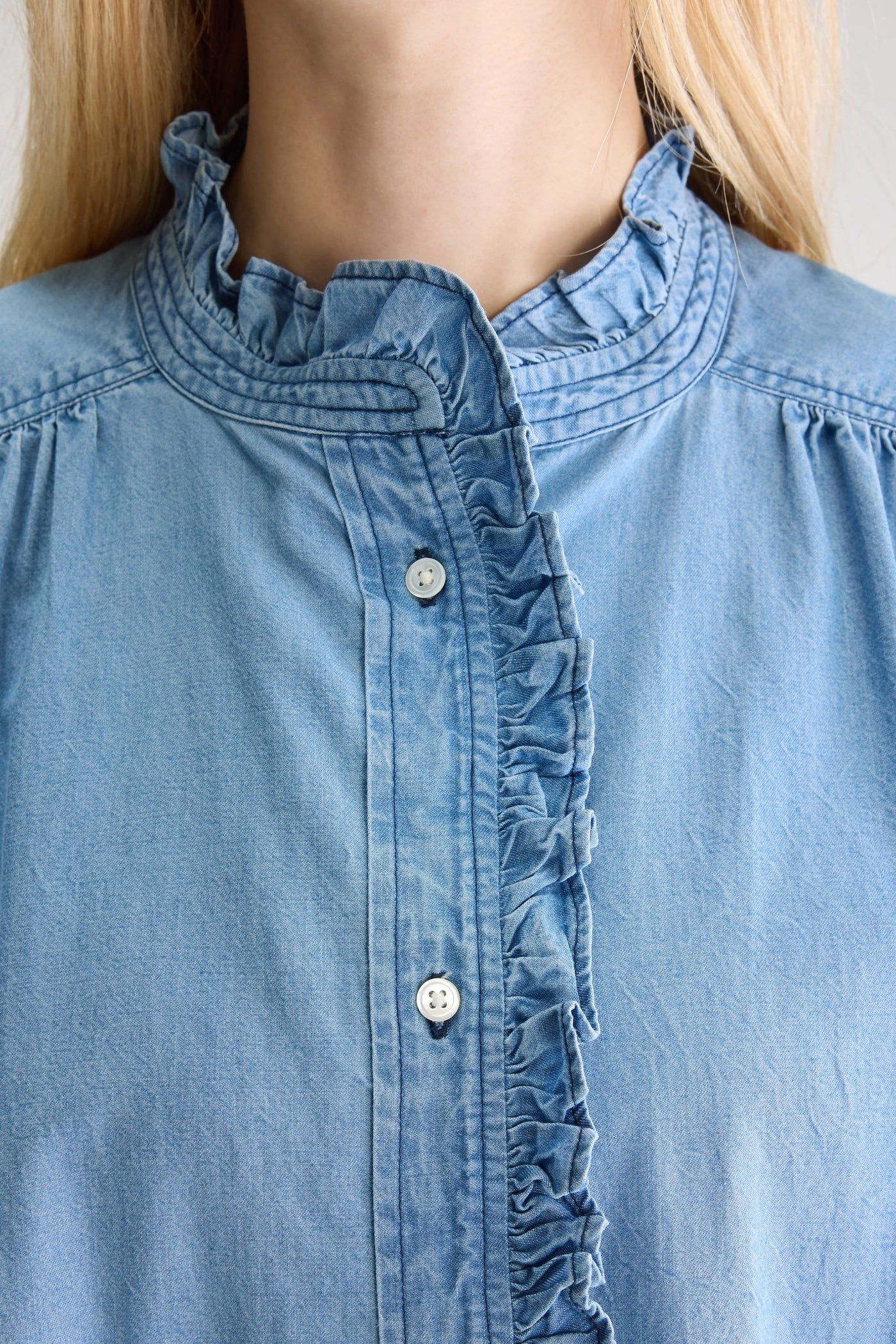 Tra questi capi spicca una camicia da donna in chambray di cotone, che incarna l’impegno del marchio verso la qualità e il design raffinato, offrendo un’opzione versatile e chic per diverse occasioni.