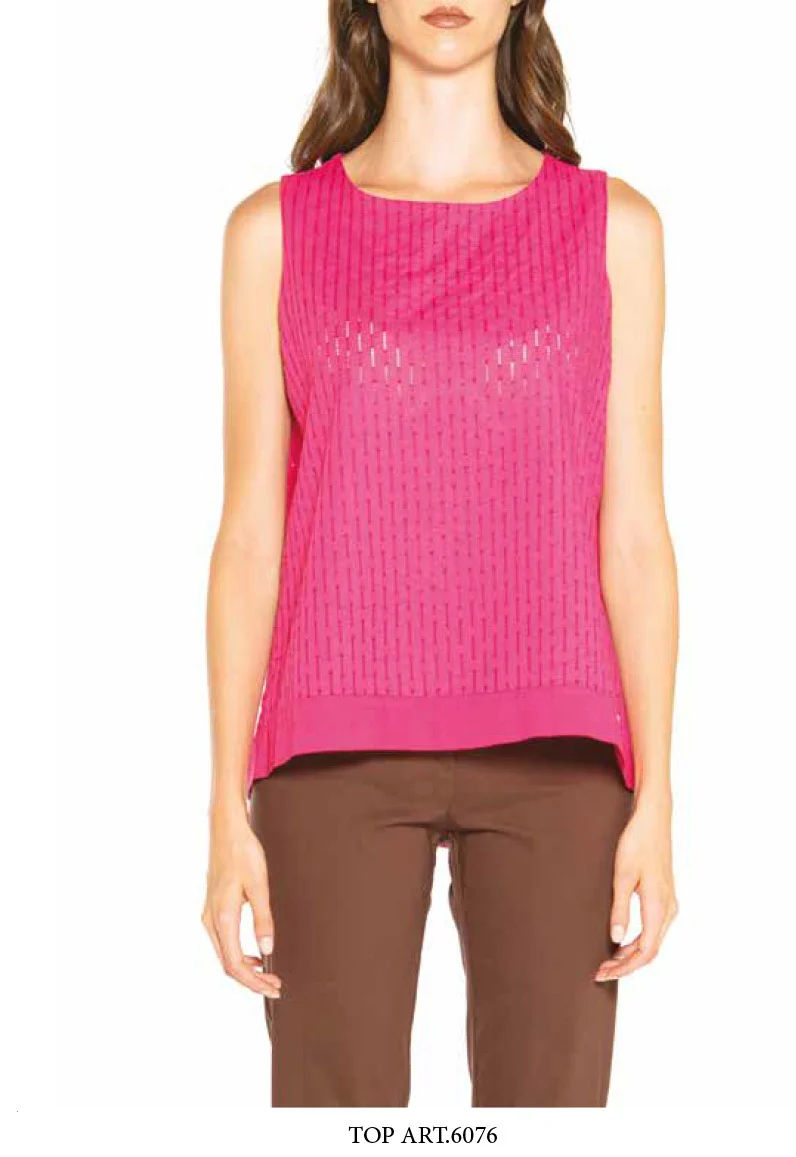 Canotta donna colore fucsia o blu modello svasato in popel ricamato composizione 100% cotone