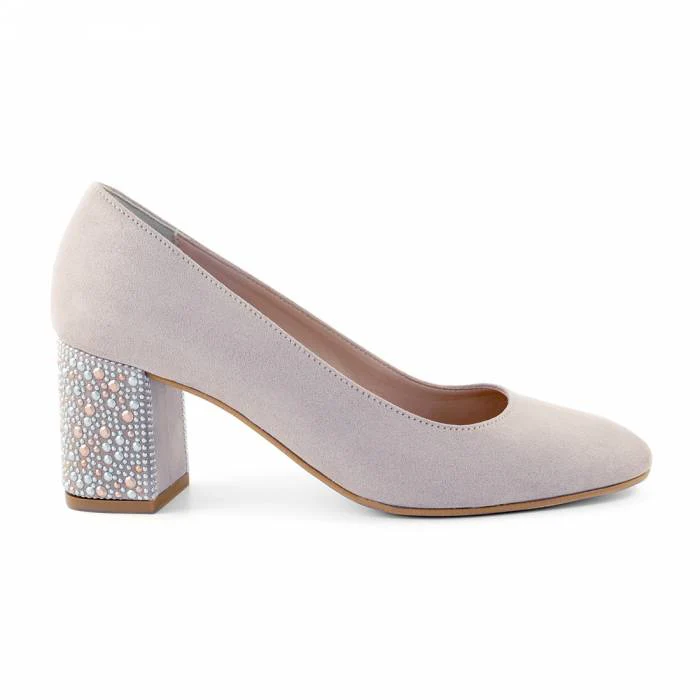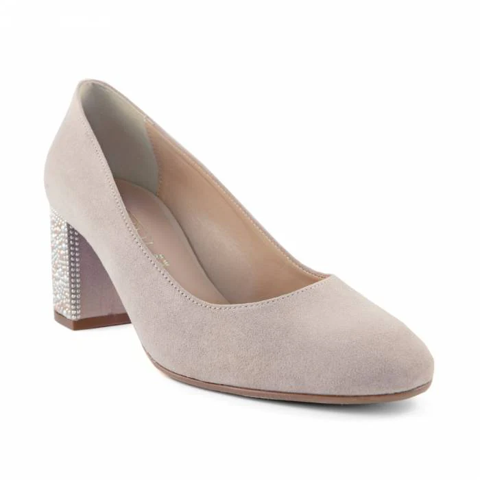 Decollètè elegante rosa con tacco largo Materiale ecopelle effetto camoscio rosa nude Tacco largo cm 5 impreziosito da glitter rosa e argento Plantare in pelle Calzata comoda Punta arrotondata