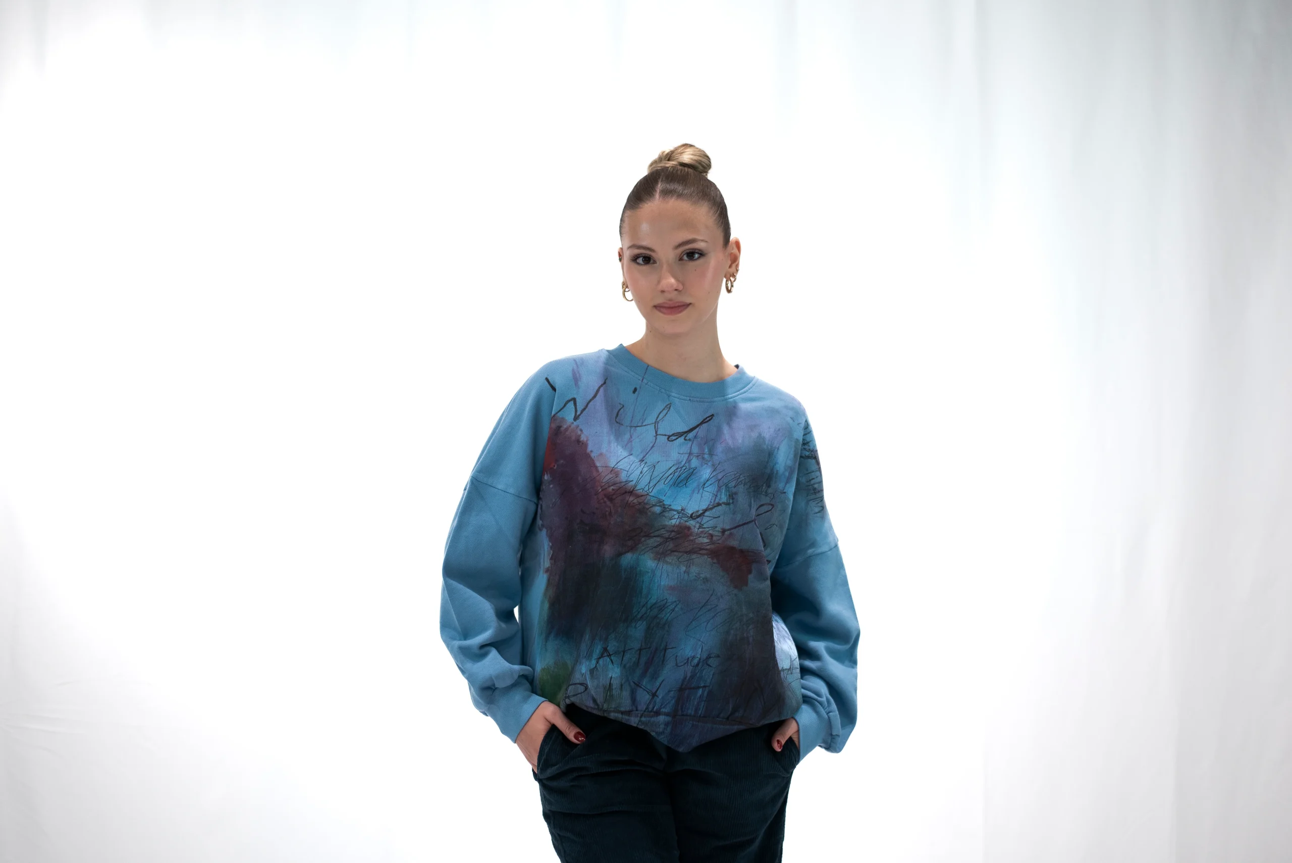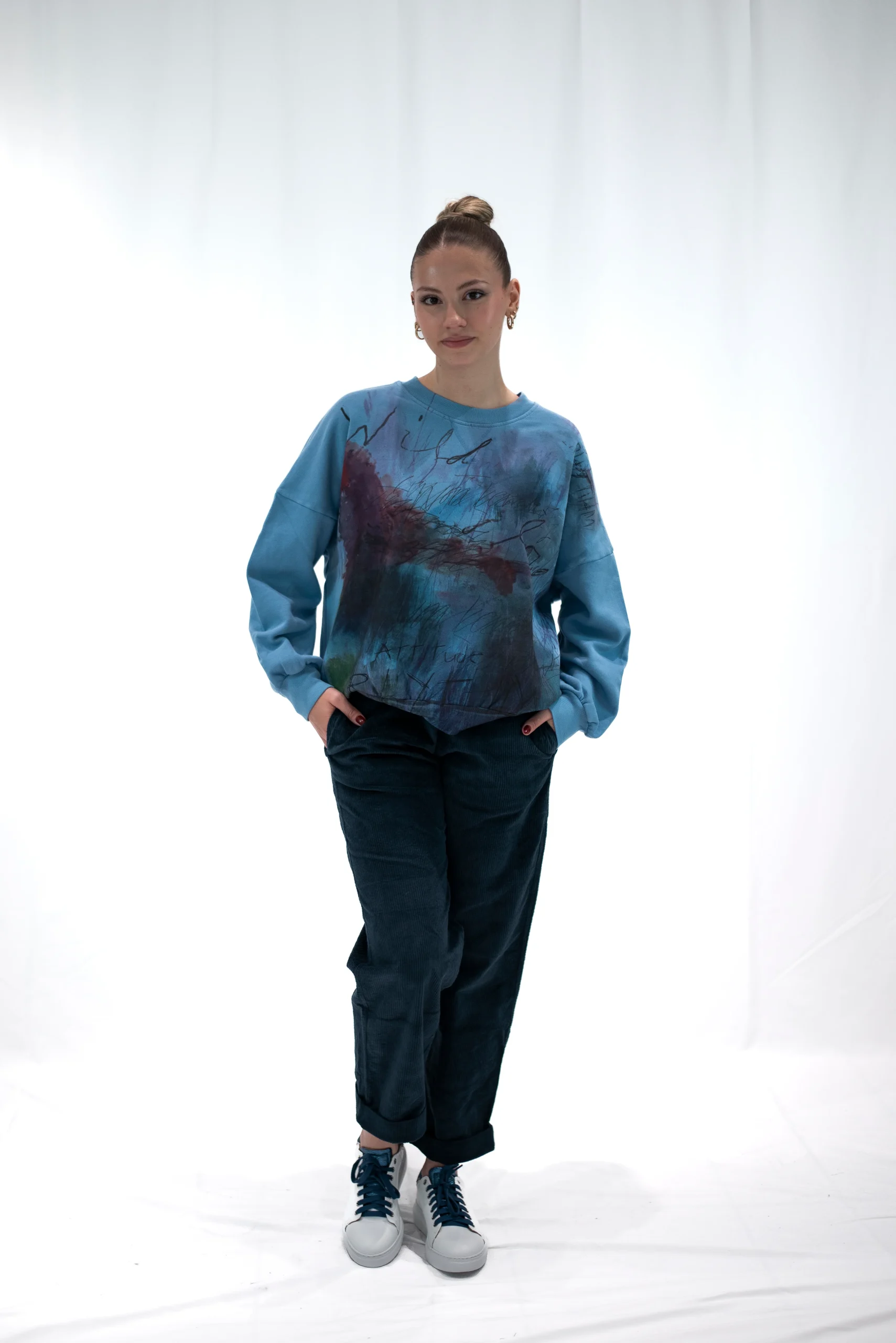 La garzatura interna del tessuto rende il capo più caldo e accogliente. La superficie soffice fornisce anche una sensazione di comfort e morbidezza sulla pelle. Ideale all’aperto o per un momento di relax. Tintura in capo ecologico
