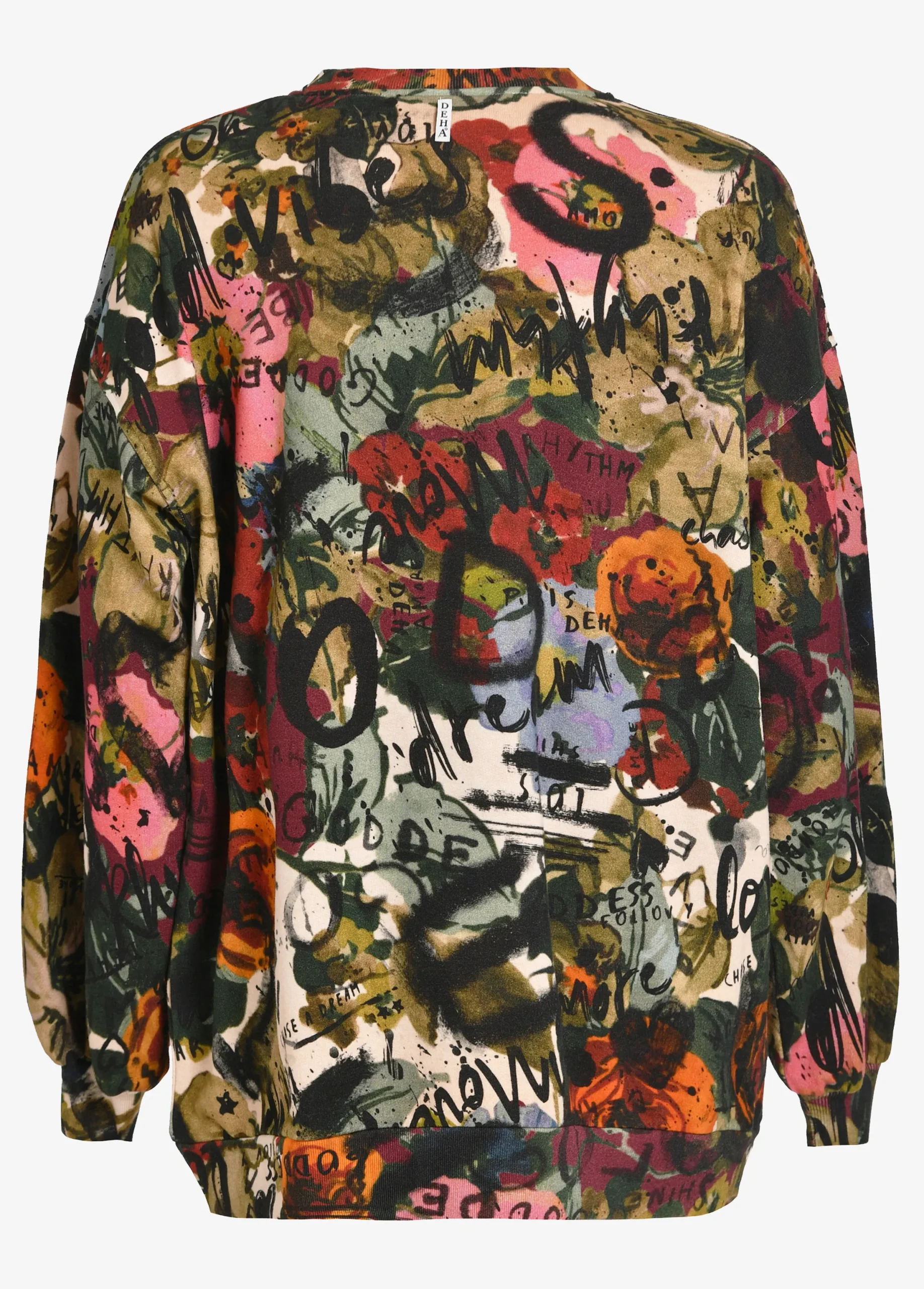 FELPA DEHA STAMPATA A PALLONCINO Codice prodotto: D7314365710 felpa stampata in cotone morbido 210 grm girocollo e polsi in costina – fondo maniche asbuffo vestibilità comoda tinto in capo – la modella è alta 174 e indossa taglia M 100% COTTON stagione autunno/inverno
