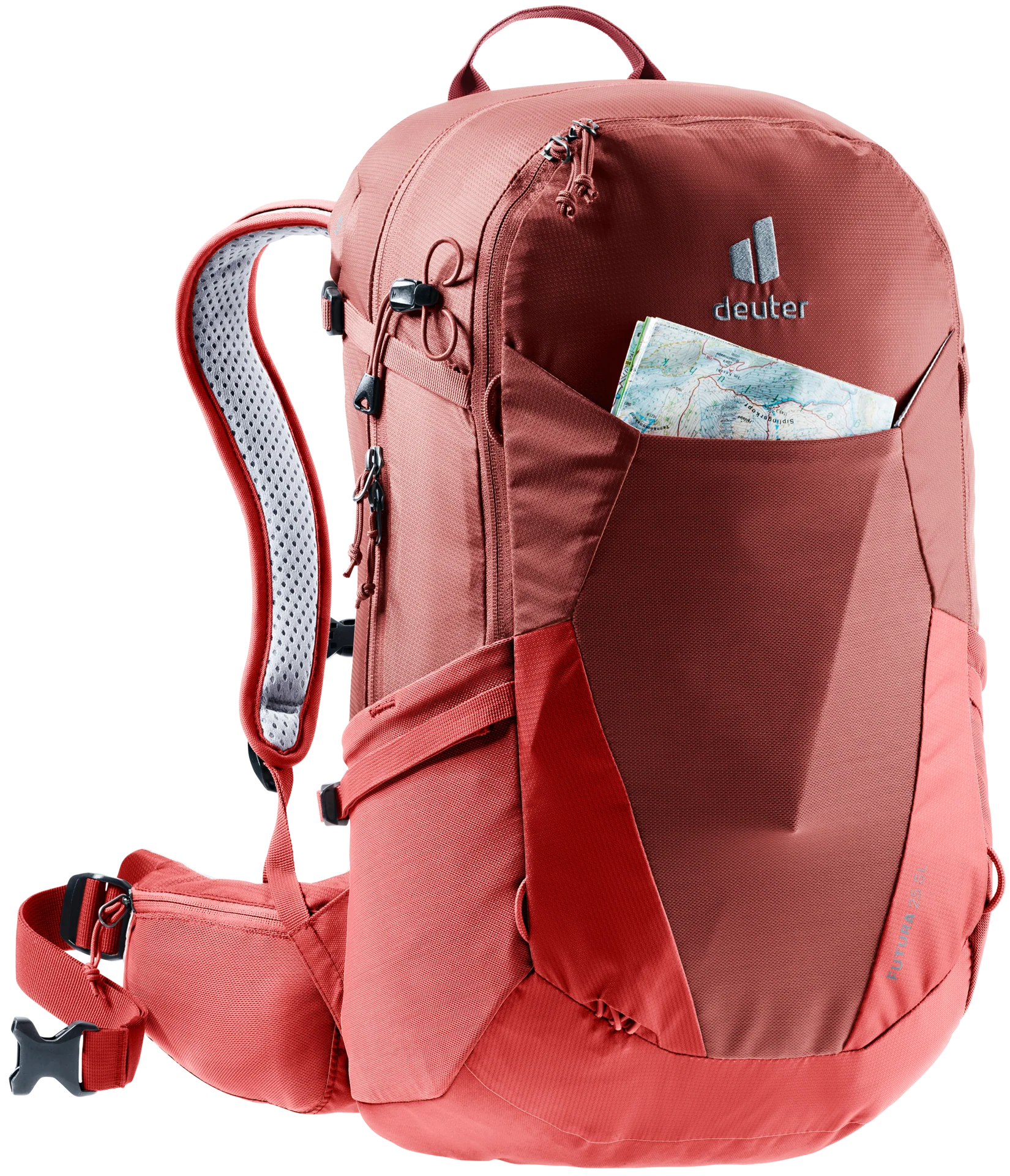 Lo zaino da trekking leggero e funzionale Futura SL è stato appositamente progettato per adattarsi all’anatomia femminile. Con la schiena più corta, gli spallacci più stretti e le pinne dei fianchi a forma conica, il Futura SL sta comodamente seduto sulla schiena. L’arioso sistema dorsale Aircomfort con la nuova rete garantisce la massima ventilazione sulla schiena durante le escursioni sportive. Se l’abbigliamento dovesse diventare umido, può asciugarsi rapidamente nella tasca anteriore elastica e permeabile all’aria durante l’escursione.