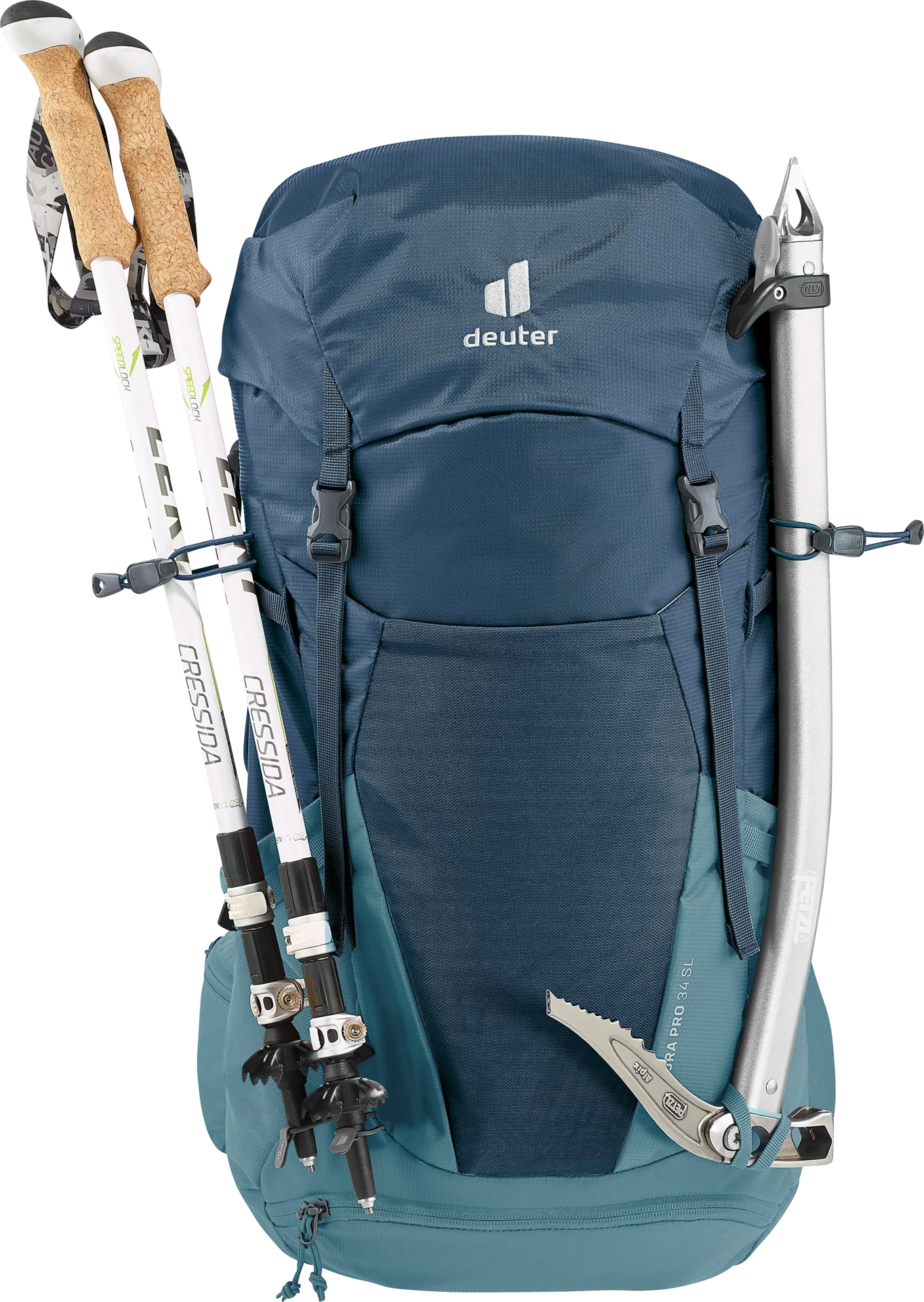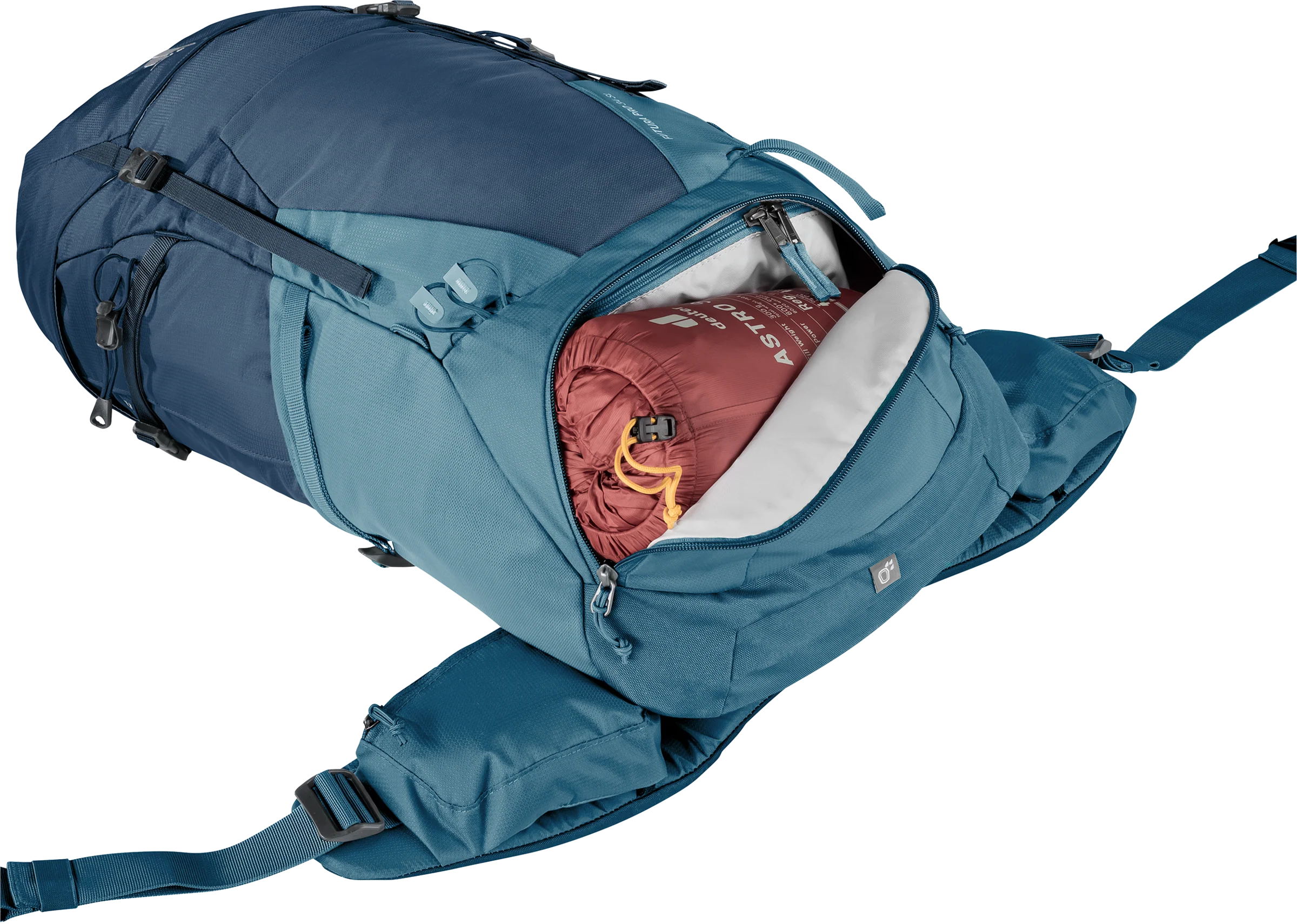 Il Futura Pro SL è stato progettato per adattarsi all’anatomia femminile ed è stato sviluppato per escursioni di più giorni in cui il comfort non dovrebbe mancare. Lo zaino è quindi dotato del sistema ergonomico di schiena a rete Aircomfort Sensic Pro. Questo garantisce la massima ventilazione posteriore grazie all’innovativa rete. Inoltre, le alette dell’anca mobili VariFlex ECL con elementi ergonomici imbottiti consentono un trasporto a risparmio energetico. Grazie alla chiara suddivisione degli scomparti, le cose possono essere riposte in modo semplice e ordinato nello scomparto superiore, nelle tasche laterali, nello scomparto inferiore separato e nello spazioso scomparto principale.