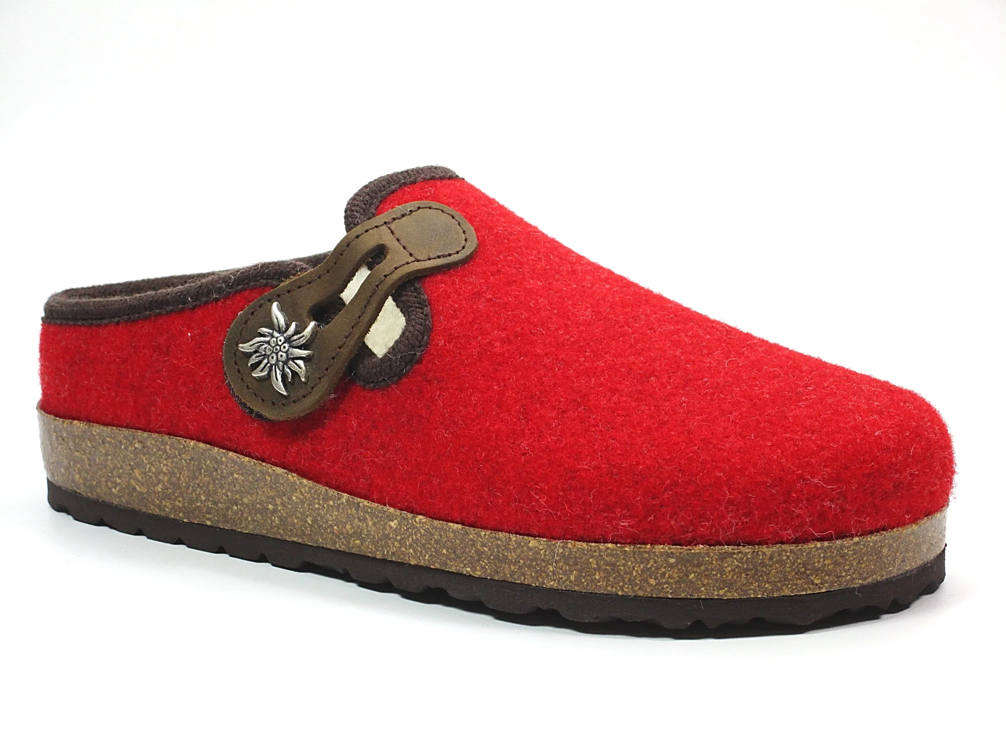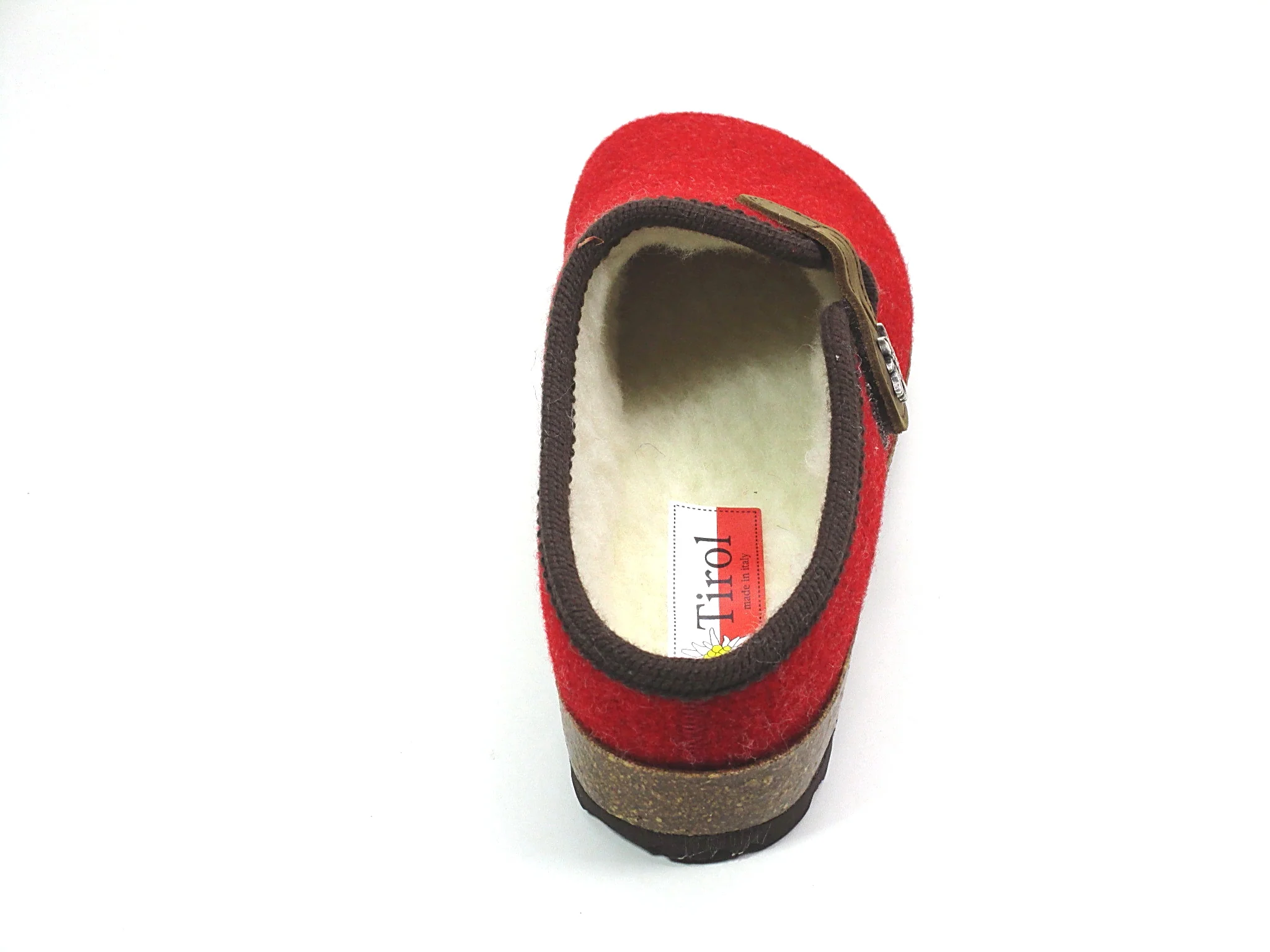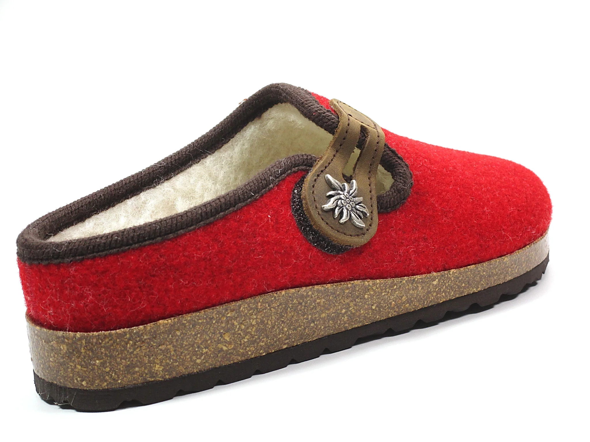 Originale pantofola tirolese in feltro naturale con fodera in lana per dei piedi che soffrono il freddo. Suola in gomma antiscivolo.