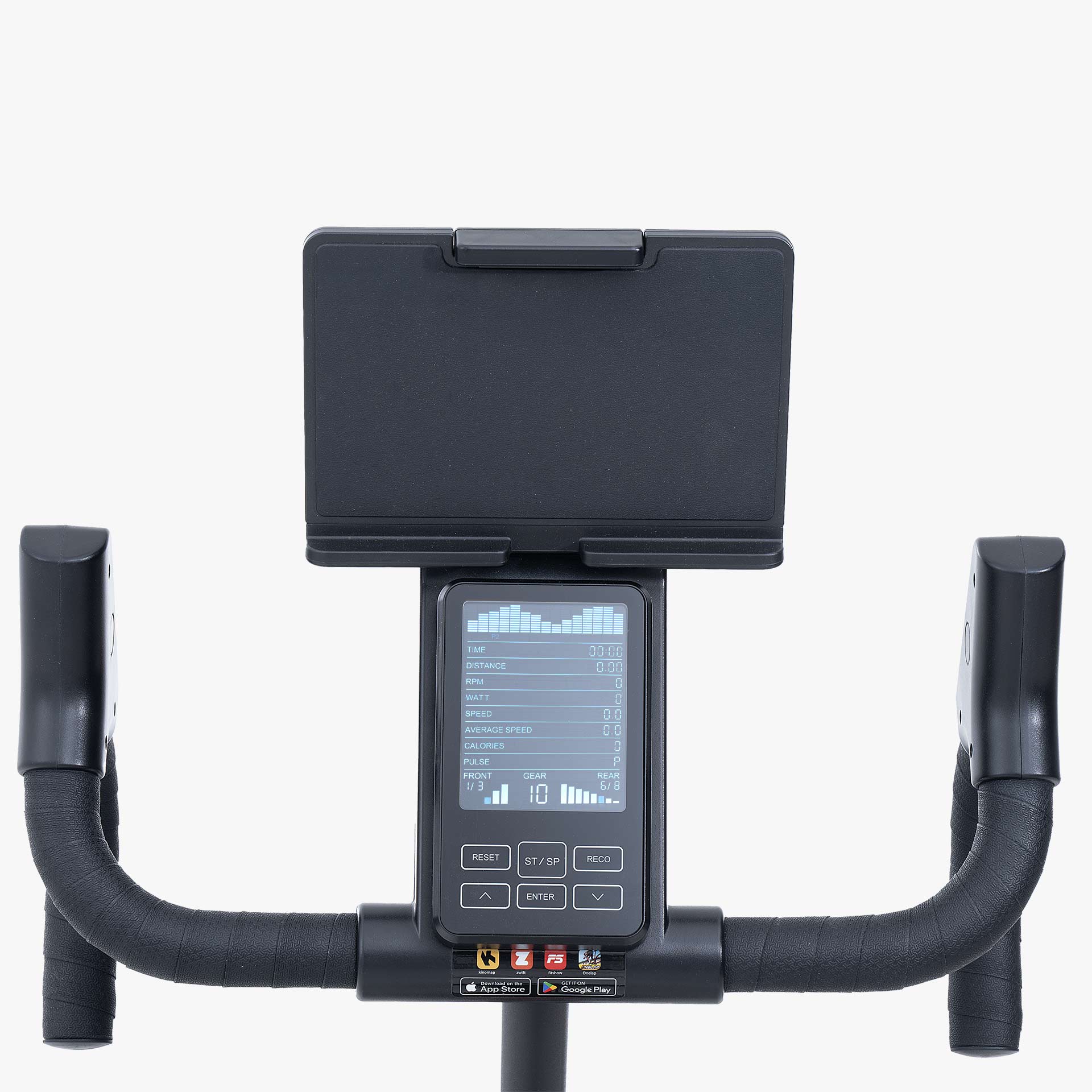 La nuova indoor bike JK 534 con ricevitore incorporato può collegarsi alle più importanti APP del mondo fitness (Zwift – Kinomap) per rendere più divertente l’allenamento, pedalando in giro per il mondo o sfidando amici su tracciati virtuali on-line, restando comodamente a casa!