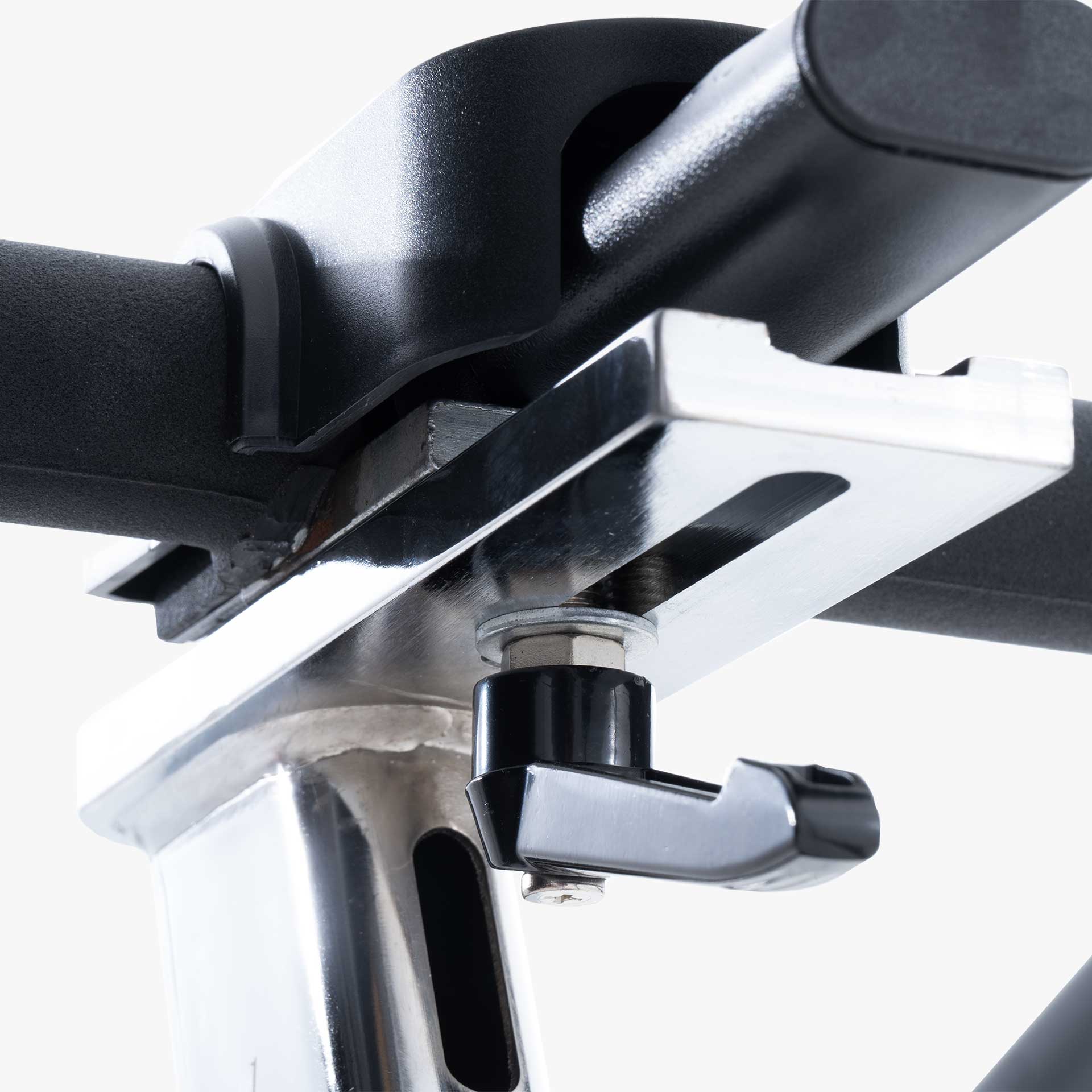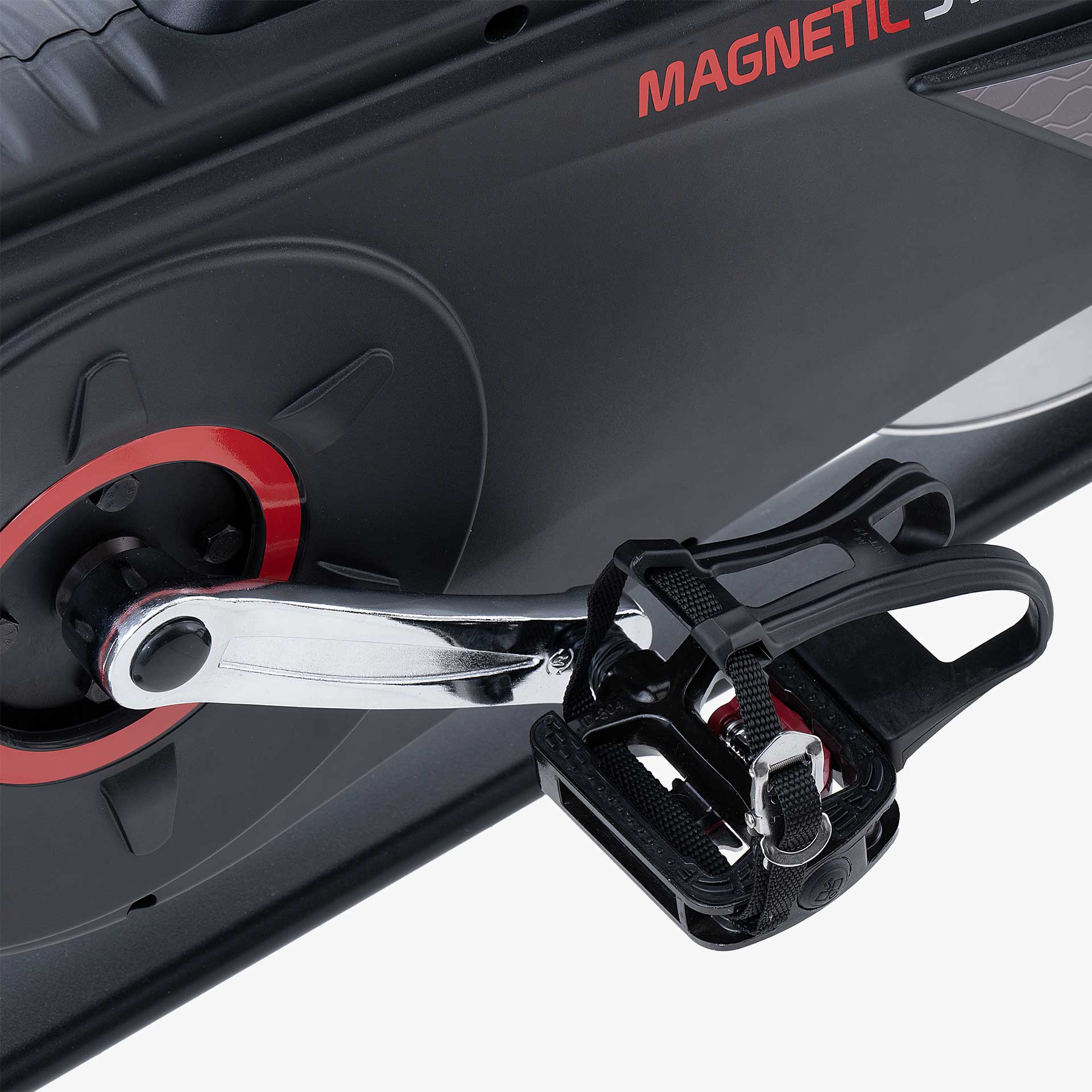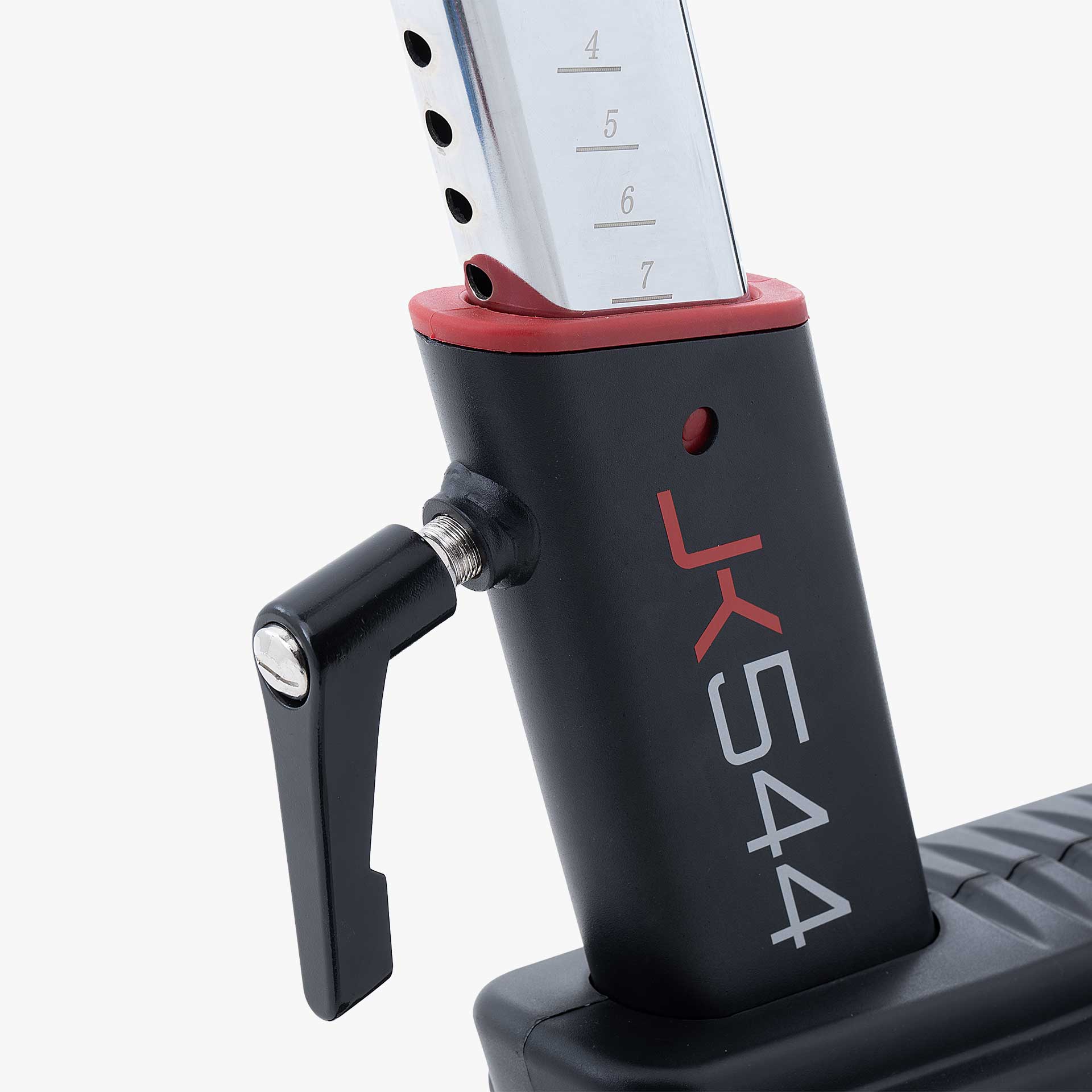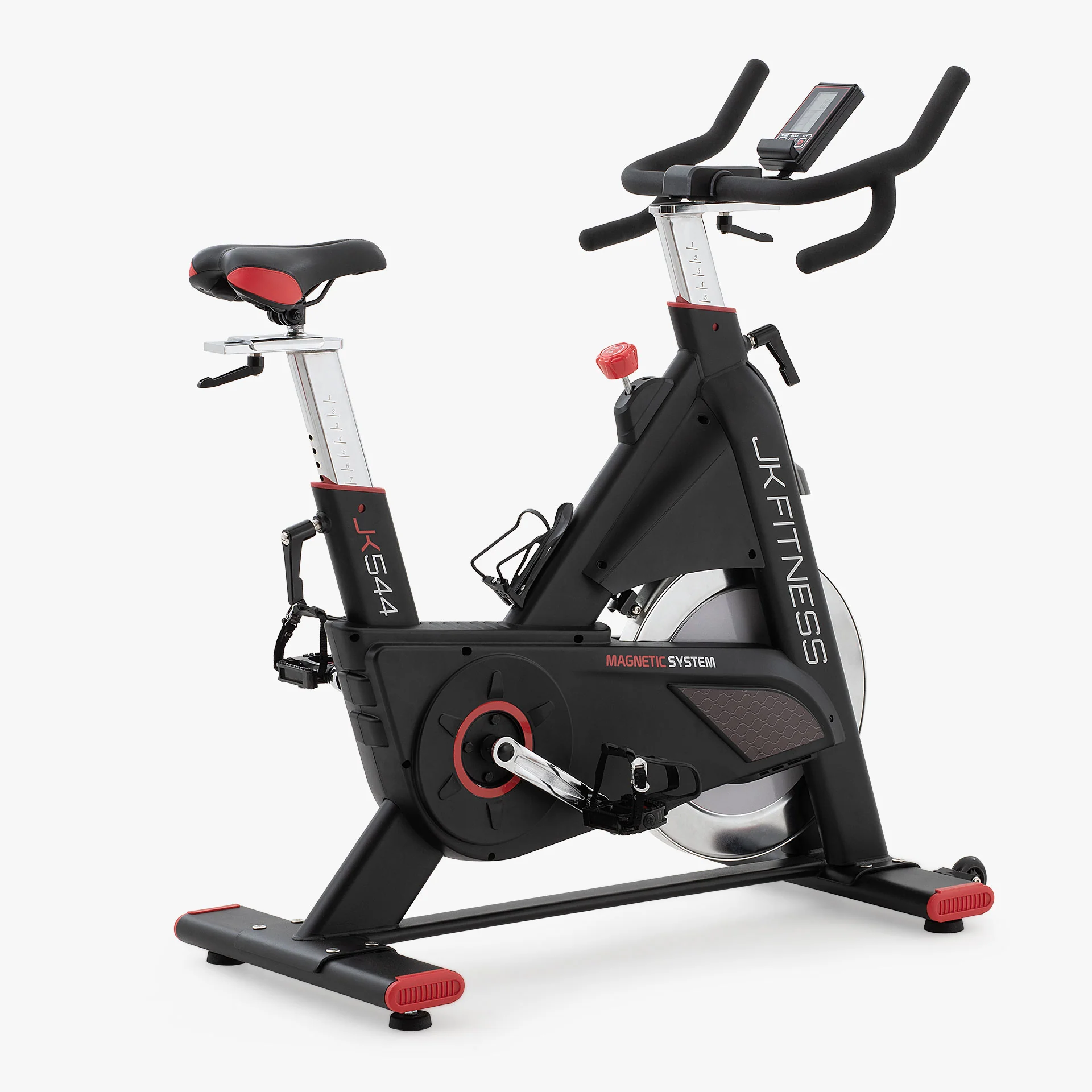 La nuova JK 544 è una spin bike magnetica di fascia medio-alta nel mondo home fitness che monta un sistema inerziale importante con una massa volanica di 22 kg (volano bilanciato), un freno magnetico a regolazione manuale con intensità variabile “micrometrica”. La pedalata della nuova spin bike JK 544 è estremamente fluida e piena anche alle alte resistenze, offrendo bellissime sensazioni all’utilizzatore, anche a quello più esigente. Per un ottimo comfort l’indoor bike JK 544 ha la regolazione in altezza della sella su 12 posizioni (misura della gamba da 73,5 cm a 99,5 cm) e in profondità 7,5 cm, il manubrio multi-presa rivestito in dipping con prese basse crono, si regola in altezza su 8 posizioni e in profondità 8 cm; queste ampie regolazioni permettono di trovare sempre la migliore posizione in sella ad ogni utilizzatore, anche a persone molto alte! La sella racing design, anatomica, con foro centrale, aiuta e migliora la sensazione a bordo garantendo confortevoli e lunghe pedalate senza particolari fastidi. Il pedale racing antiscivolo in alluminio con attacco rapido SPD e cinghietto ferma piede, aiuta a mantenere il corretto appoggio della scarpa in tutte le fasi della pedalata, anche in quelle più intense.