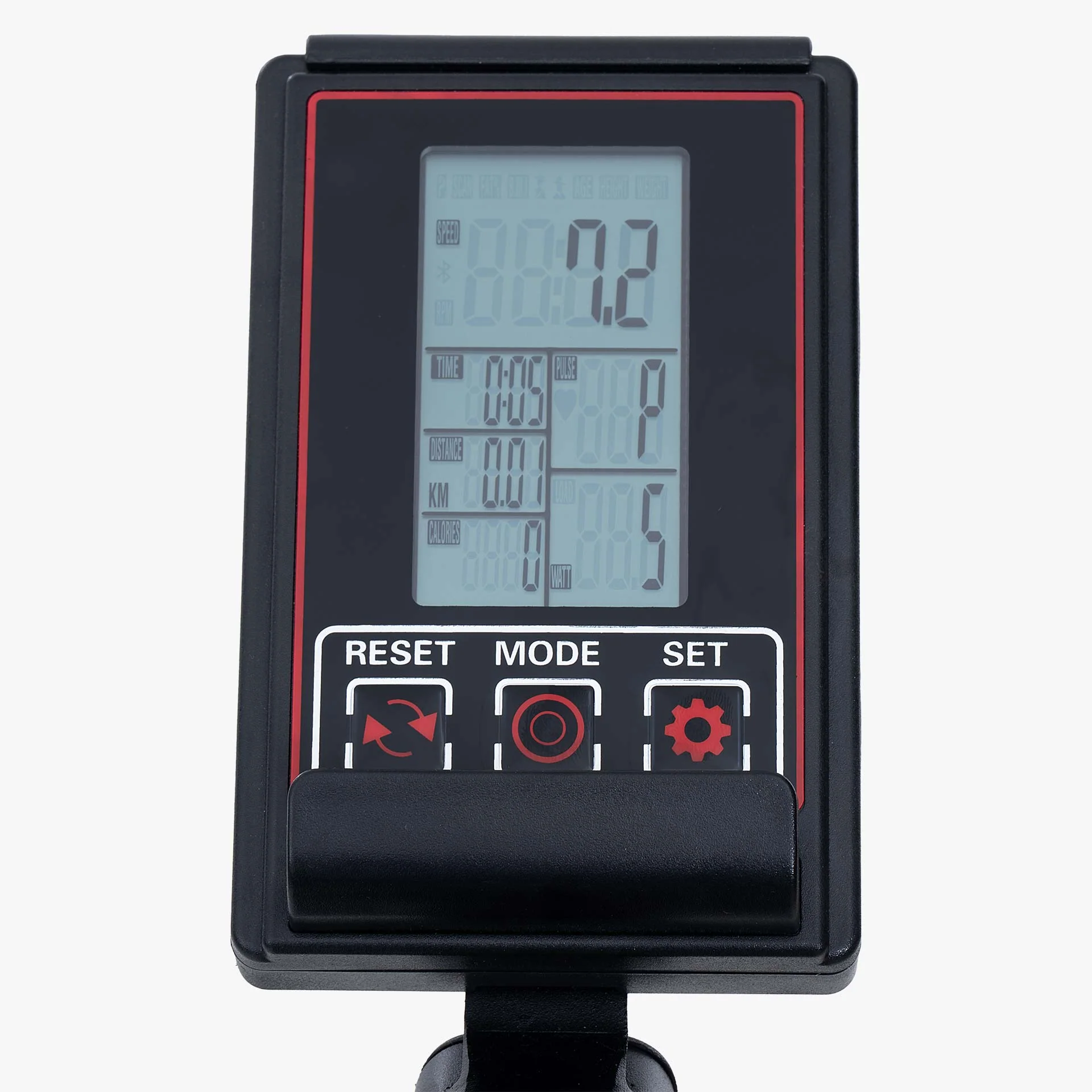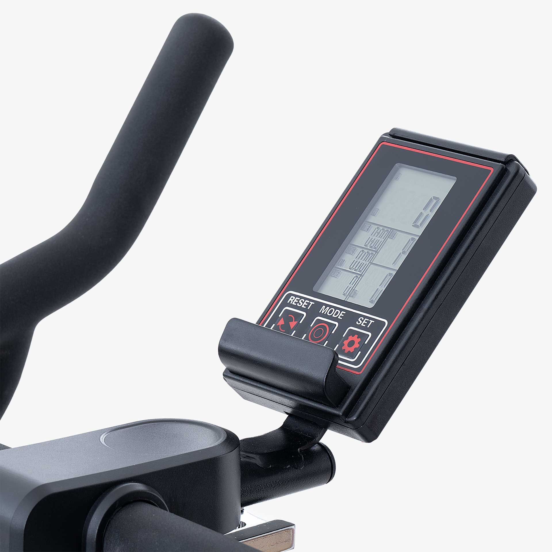 Il ciclo-computer con un grande display LCD multi-informazione è inserito nella console con un supporto porta cellulare / tablet e permette di mantenere sotto controllo tutti i parametri dell’allenamento cardio, quali: tempo, distanza, velocità, RPM, calorie, Watt, frequenza cardiaca. La gym bike JK 544 è dotata di un sensore nella console per rilevare la frequenza cardiaca dell’utilizzatore tramite la fascia cardio durante le sessioni di un allenamento cardio più intenso; la fascia cardio è offerta di serie.