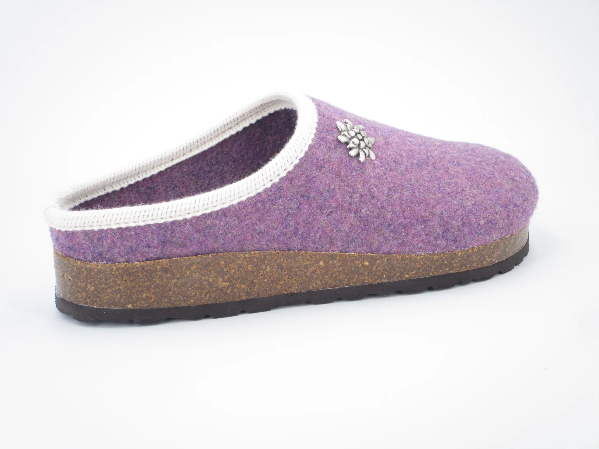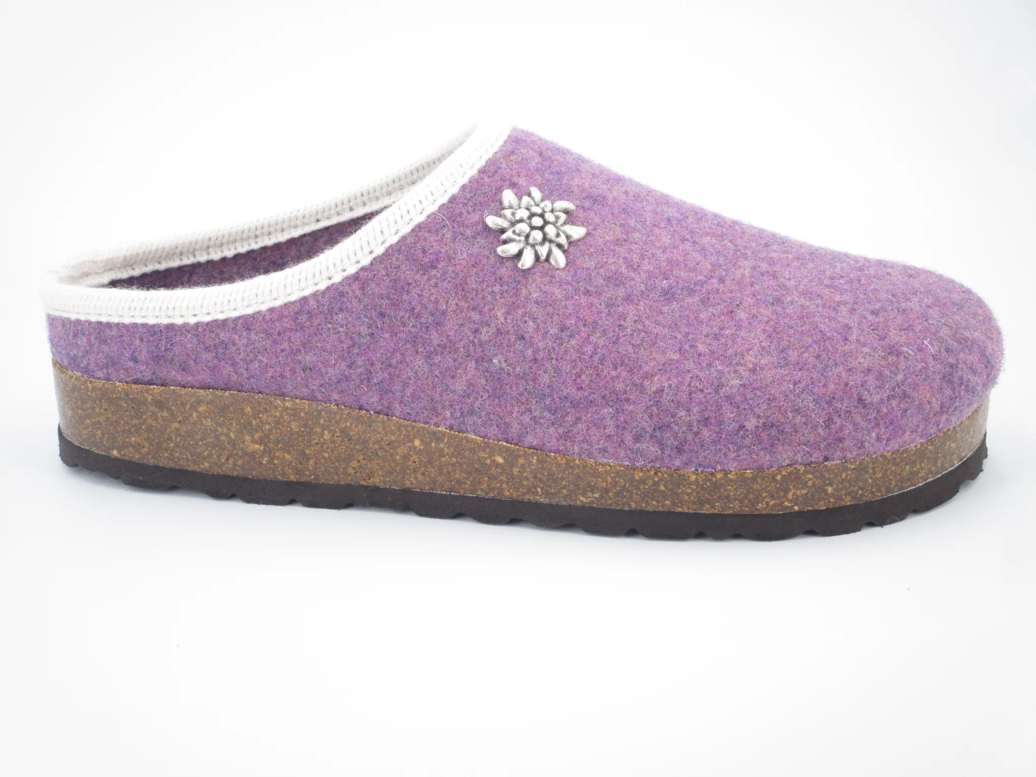 Originale pantofola tirolese in feltro naturale per dei piedi che soffrono il freddo. Suola in gomma antiscivolo.
