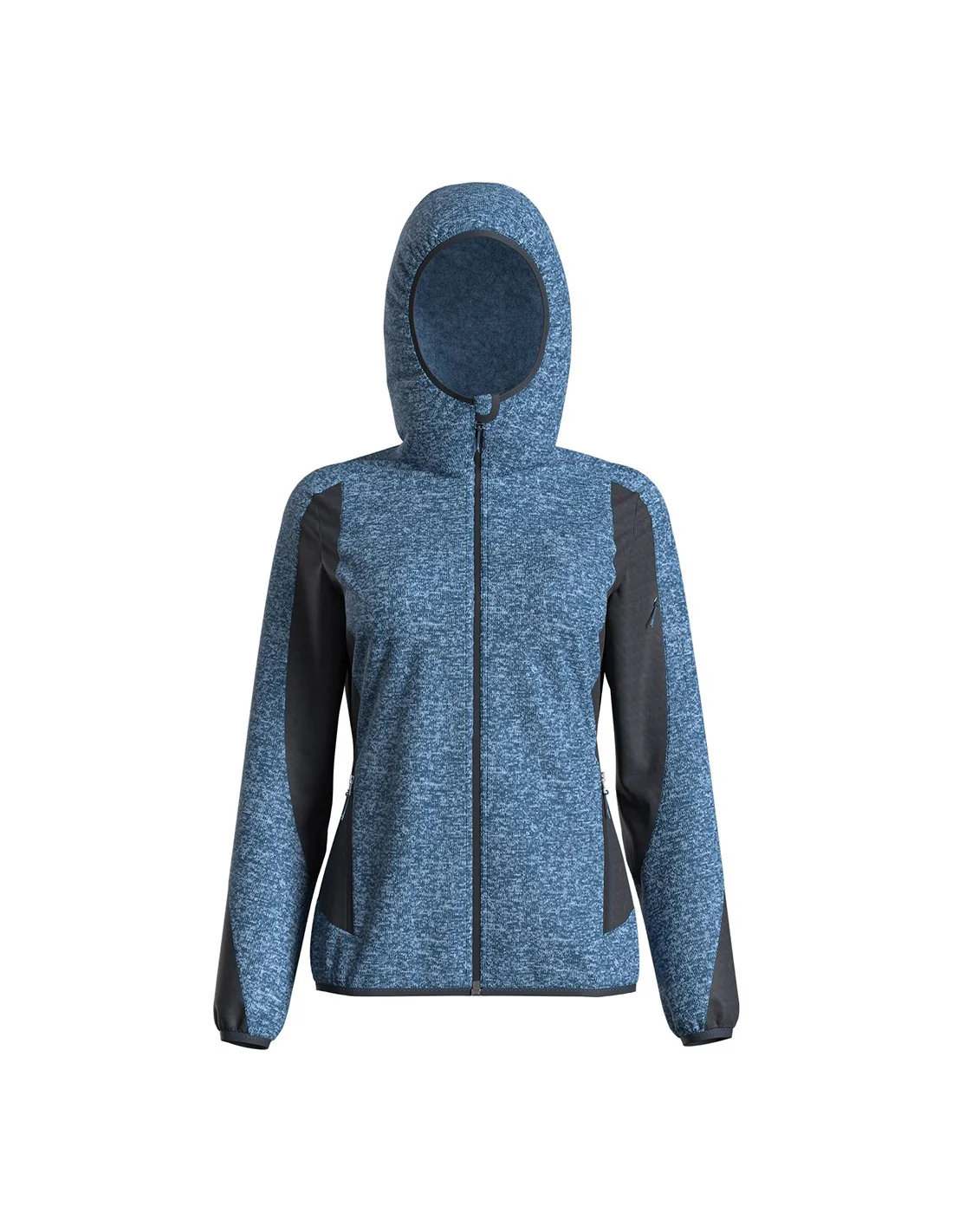 Pile melange con effetto tricot, molto caldo, traspirante e leggero, ideale sia per il tempo libero sia per le attivitร di trek ed escursionismo. Il cappuccio fisso, due tasche in vita ed un taschino sulla manica rendono il capo molto pratico e confortevole.