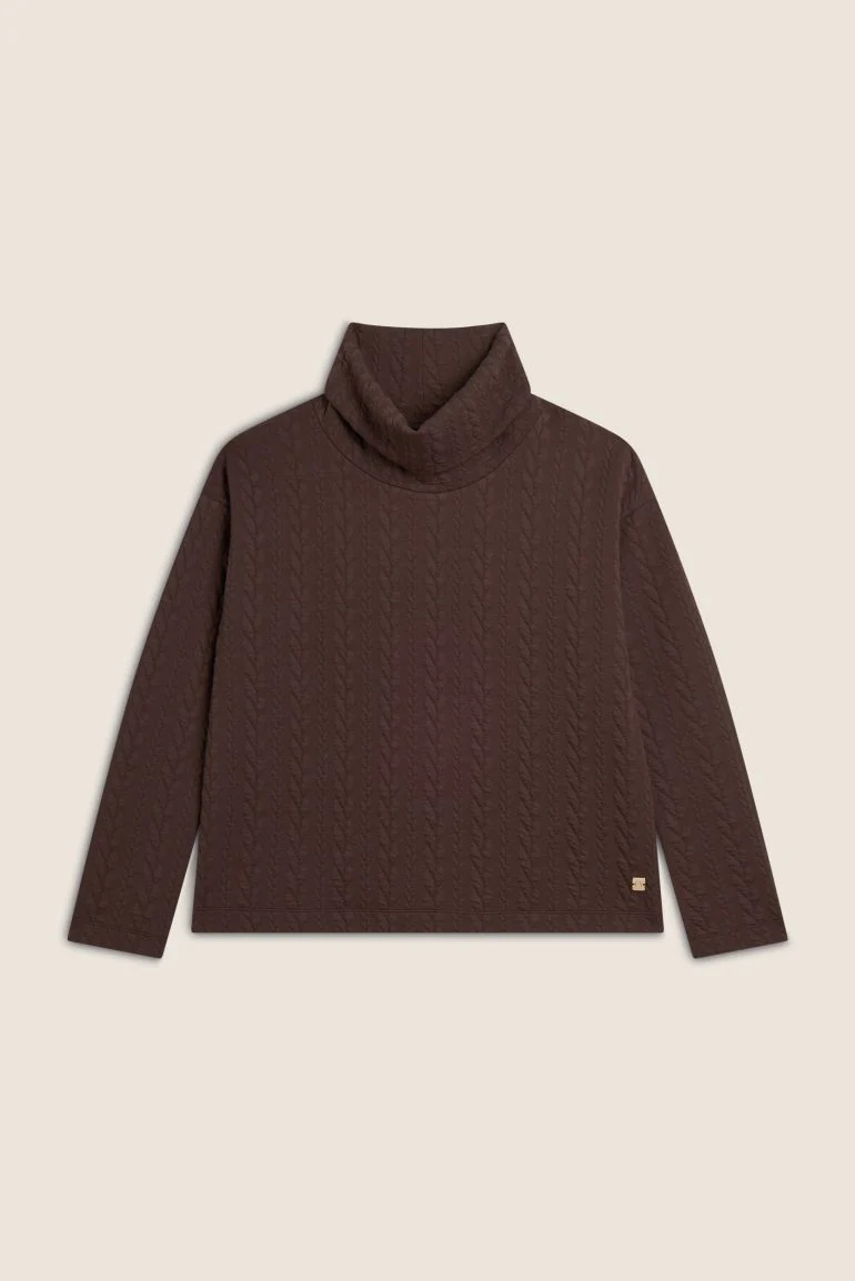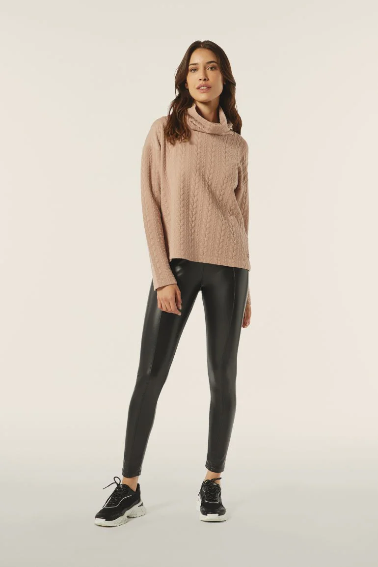 Maglia donna in felpa bonded a trecce con collo a tubo