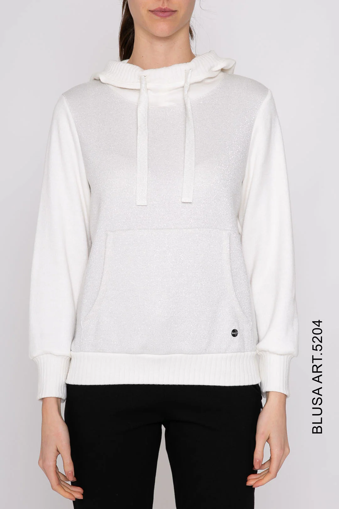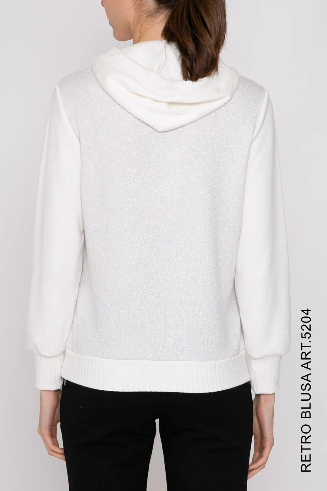 5204 OLA GIACCA FELPA MANO LANA CHIUSA C/CAPPUCCIO INS. LAME’ E COSTA Composizione: 50%VI 33%PL 17%PA stagione autunno/inverno