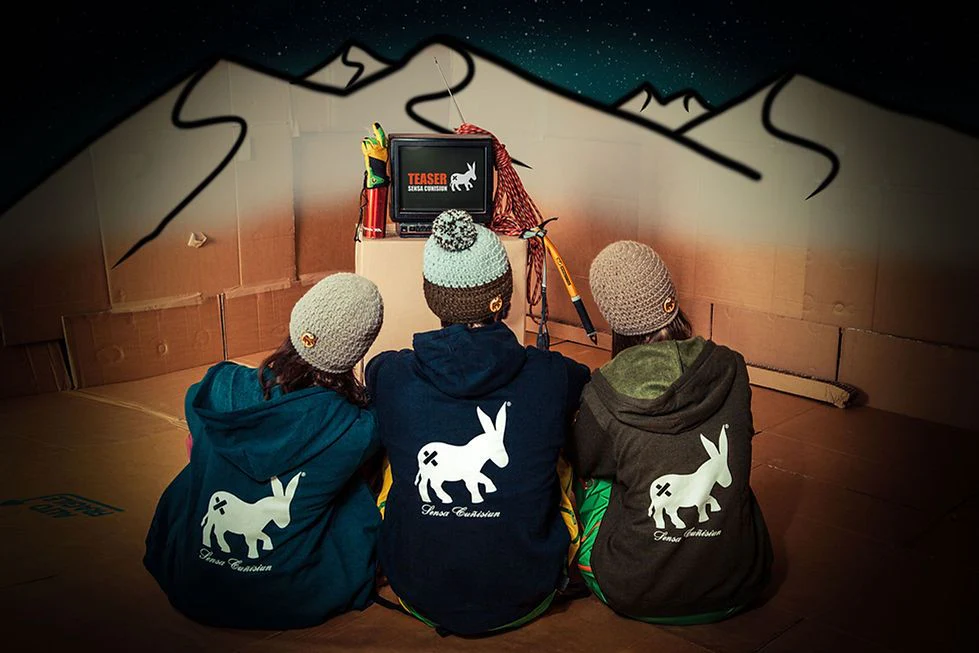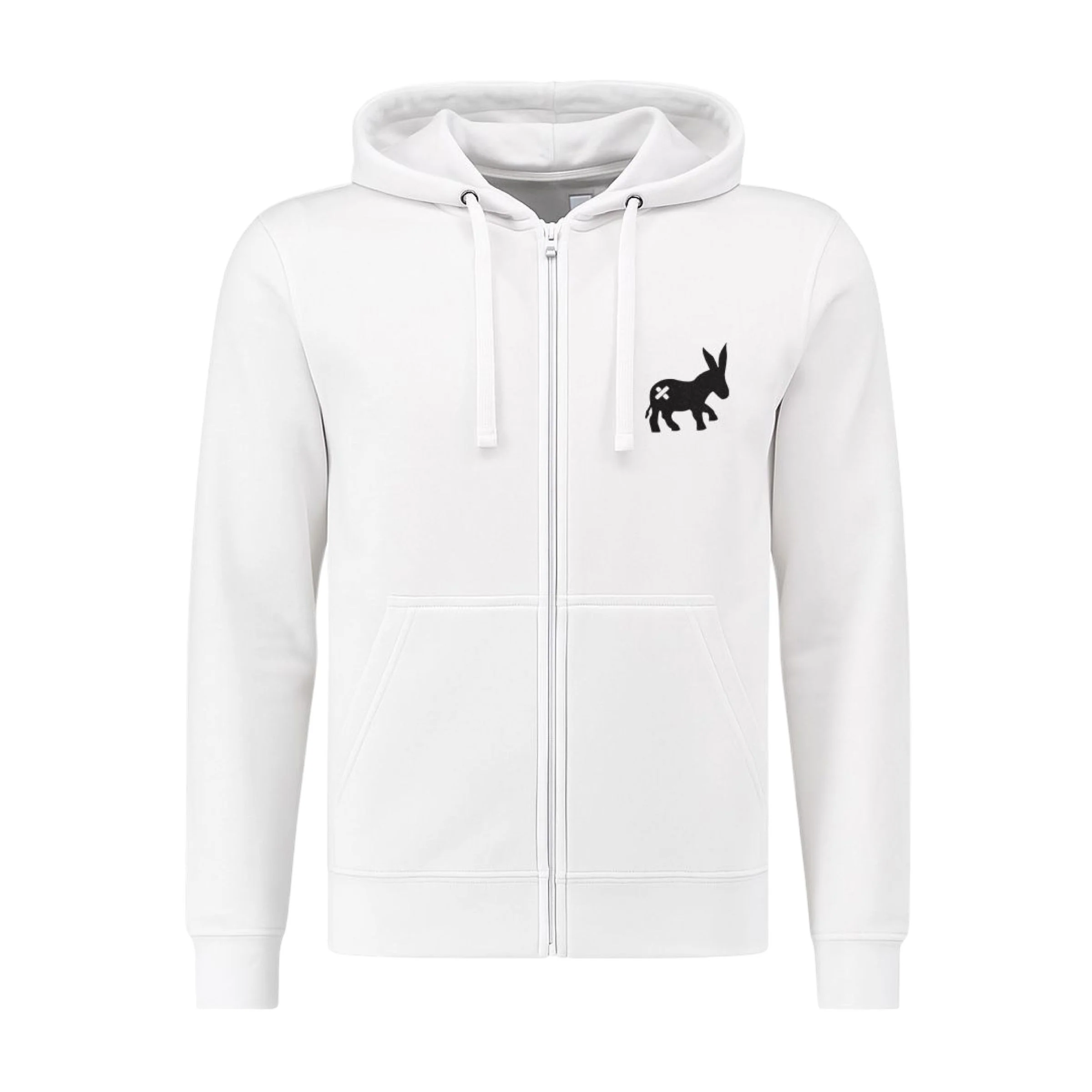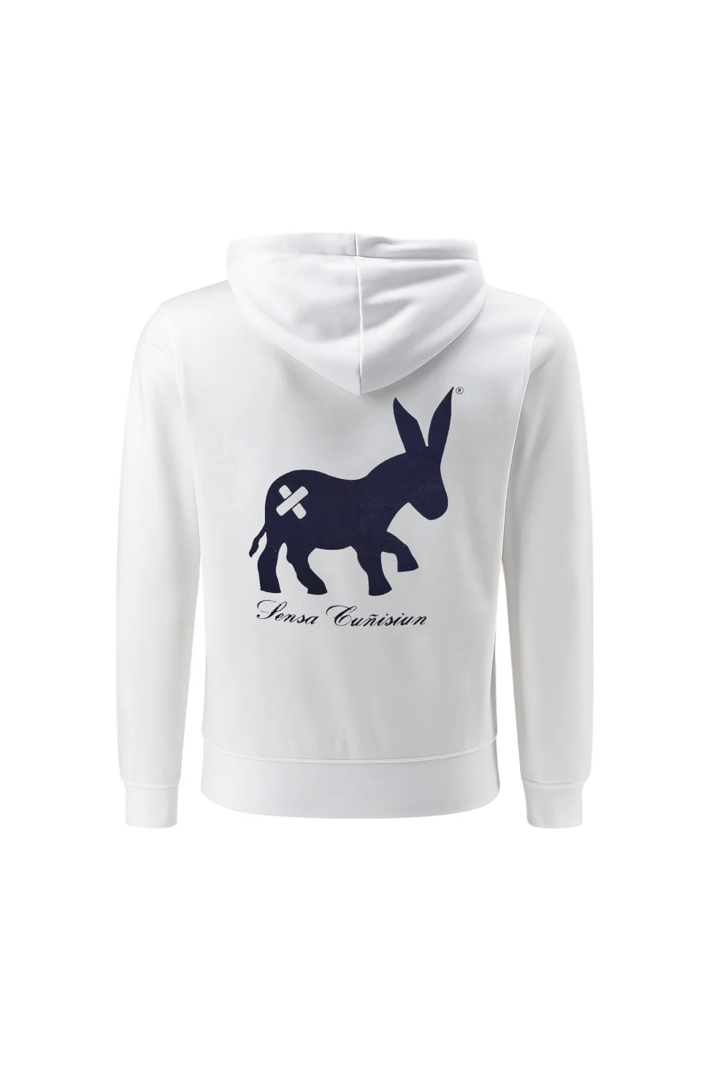 Felpa con cerniera, cappuccio e tasca per le mani sul davanti, logo Asino con toppe davanti e dietro “Sensa Cunisiun declina ogni responsabilità per qualsiasi atto di stupidità indotto dall’uso di questo capo. L’uso improprio di questo capo può portare a stati permanenti di immaturità e goliardia. essere lavata dalla neve almeno una volta al mese”