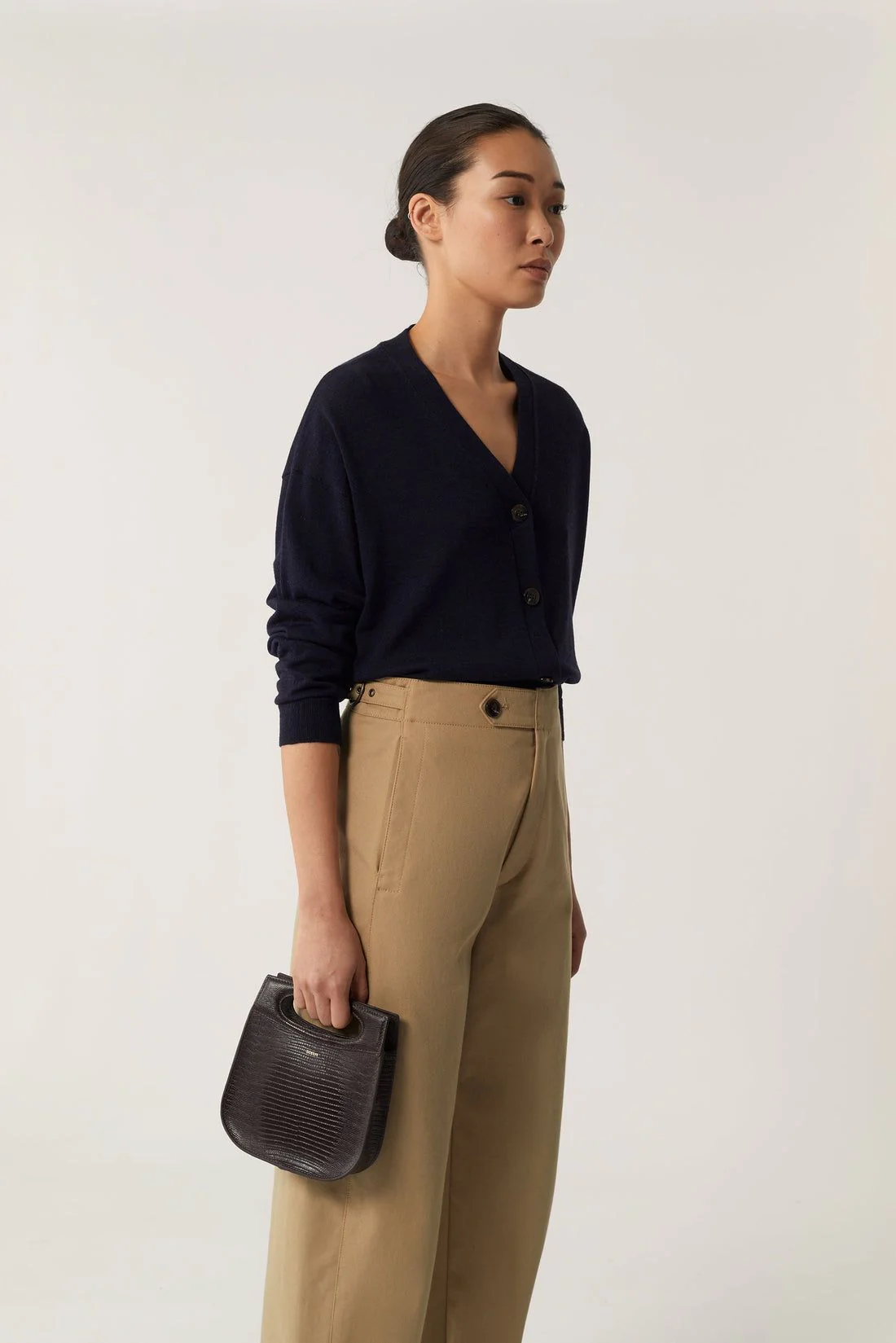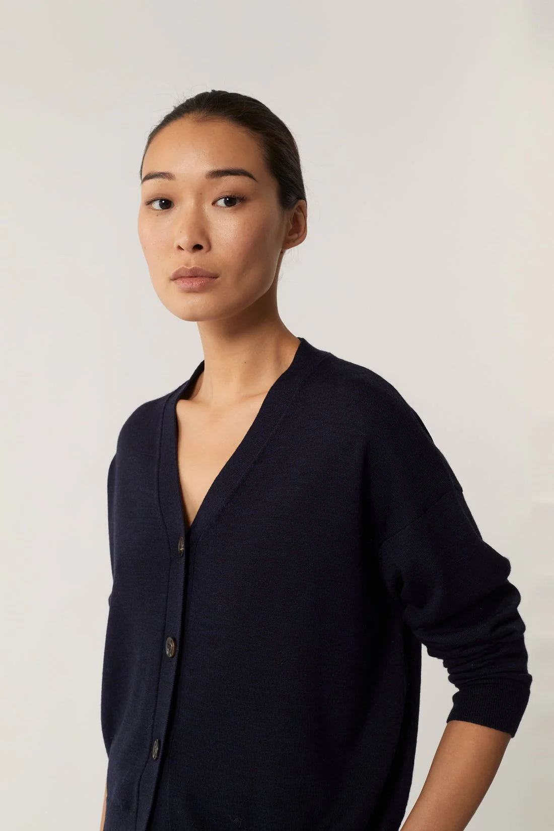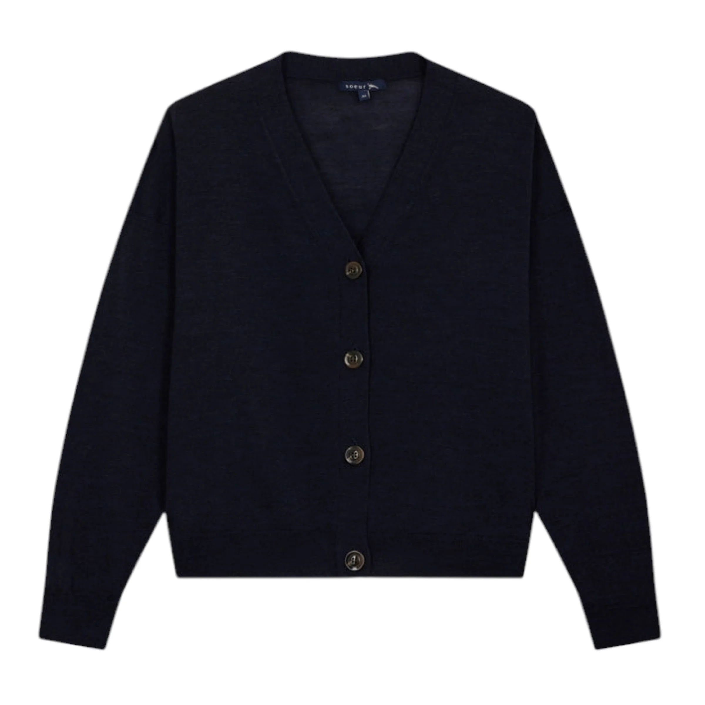La maglia Idem di Soeur è un capo essenziale per il guardaroba femminile, realizzato in pura lana merino per garantire calore e comfort. Il design presenta una vestibilità ampia con scollo a V e chiusura frontale con bottoni, conferendo un tocco di eleganza casual.