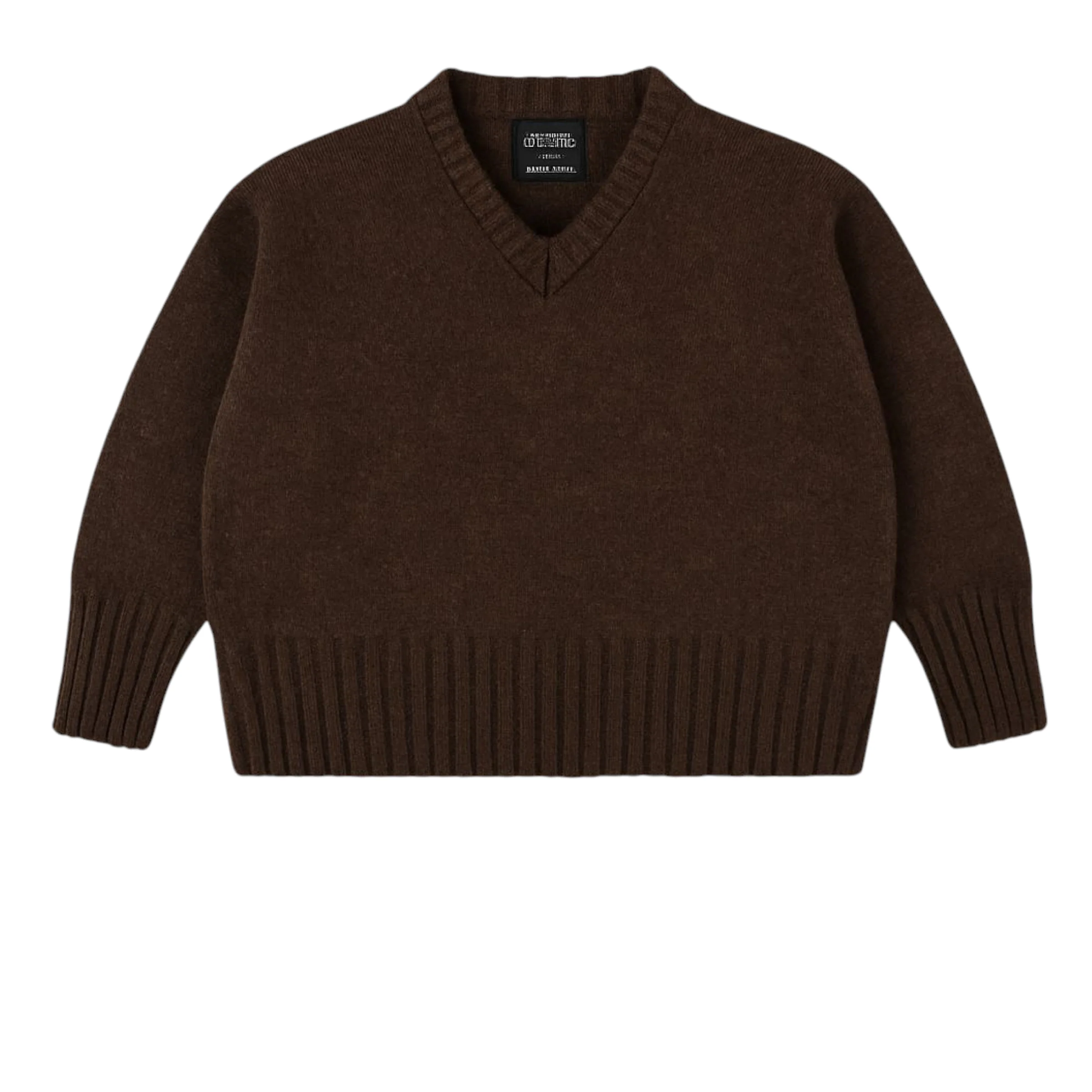 Maglione a V dallo stile rilassato, realizzato in pura lana Shetland scozzese, filata e lavorata con cura artigianale secondo tradizione. La silhouette boxy, leggermente oversize, garantisce comoditร  senza rinunciare a unโ€™eleganza disinvolta e contemporanea. Il bordo, il collo e i polsini sono a coste spesse, conferendo struttura al capo e assicurando una vestibilitร  equilibrata anche dopo diversi utilizzi. Frutto di una manifattura attenta โ€” dalla scelta del filato naturale al processo di finitura a mano โ€” รจ pensato come un capo versatile, perfetto da abbinare sia a outfit casual stratificati sia a look piรน curati, aggiungendo un tocco di calore autentico e sofisticato. Ideale per chi cerca un maglione confortevole, resistente e allo stesso tempo ricco di personalitร , capace di durare nel tempo con grazia e stile.