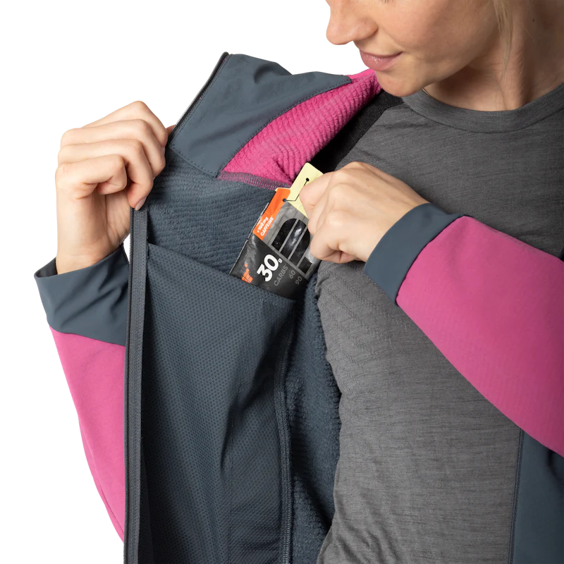 Progettata per chi affronta uscite in montagna con intensità, questa felpa tecnica con cappuccio offre isolamento termico e traspirabilità elevate, ideale come strato intermedio nelle giornate fredde. L’interno in pile double layer garantisce calore costante e comfort a contatto con la pelle, mentre il tessuto esterno è resistente al vento e all’abrasione, adattandosi anche come strato esterno nelle condizioni più miti. Dotata di elasticità in quattro direzioni, favorisce la libertà di movimento durante attività dinamiche. Il cappuccio aderente avvolge la testa con precisione, adatto anche per essere indossato sotto casco. Tasche frontali con zip e tasche interne in mesh offrono spazi sicuri e organizzati per piccoli oggetti. I polsini e il fondo elasticizzati contribuiscono a trattenere il calore e migliorare la vestibilità. Il taglio è ergonomico, valorizzando la silhouette senza limitare l’agilità. Pensata per gli sport d’alta quota e le escursioni tecniche, questa felpa combina performance, funzionalità e comfort in ogni fase dell’attività all’aperto.