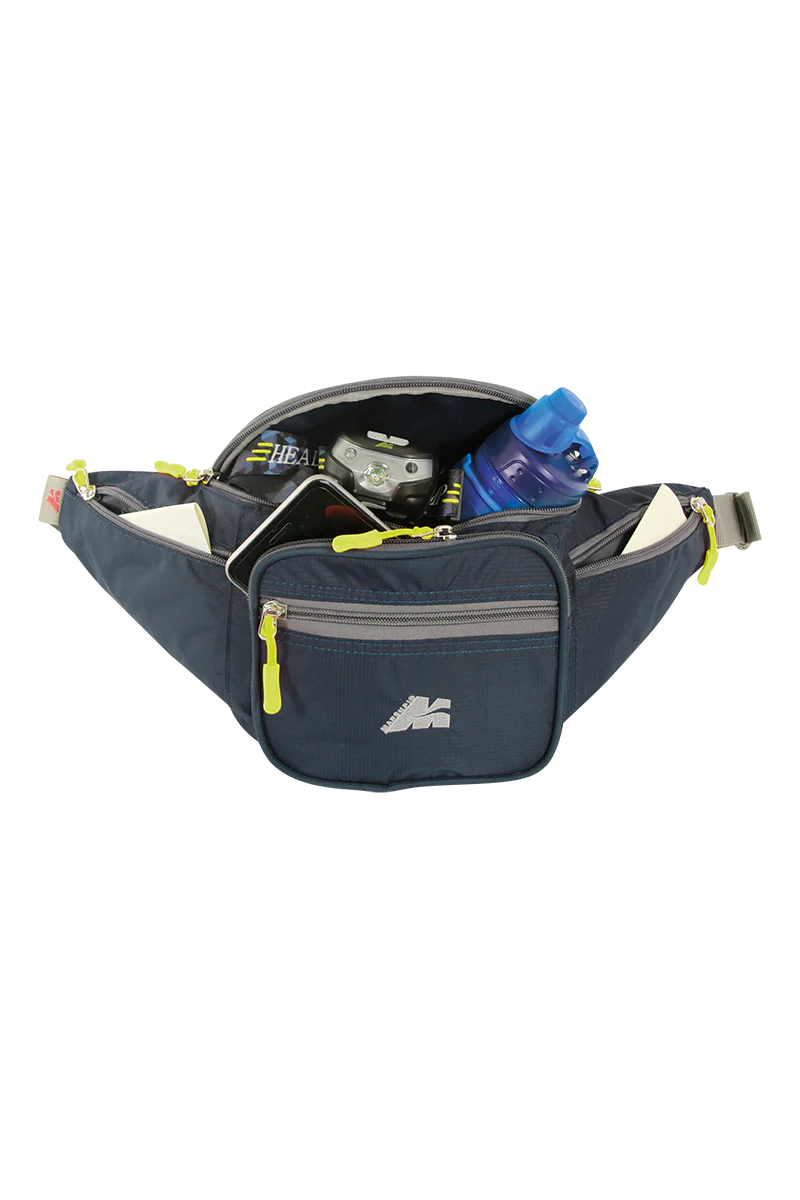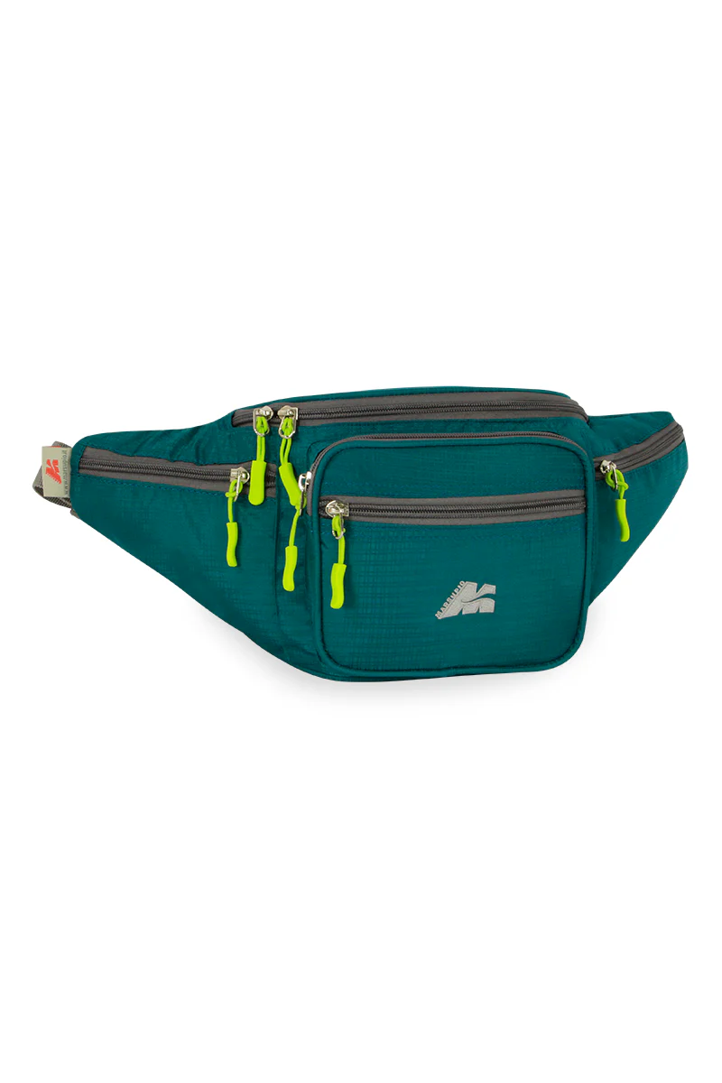 E’ un marsupio molto capiente, ha la cinghia a vita regolabile, tasca frontale, due comode taschine laterali porta monete e una posteriore.