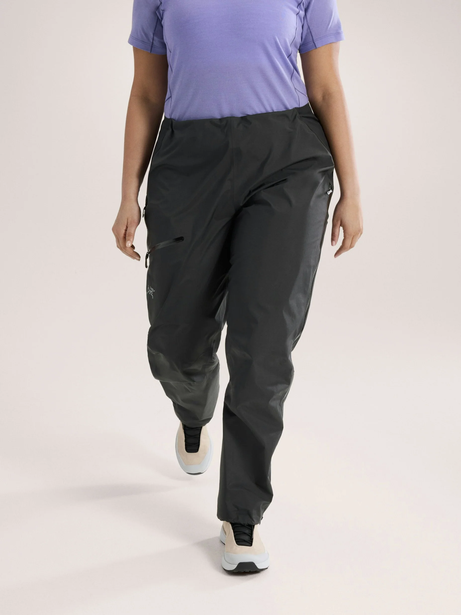 I dettagli funzionali includono zip laterali a tutta lunghezza per ventilare o indossare facilmente il capo, una cintura elastica con cordino interno per il massimo comfort e una tasca coscia con zip per lโessenziale sempre a portata di mano