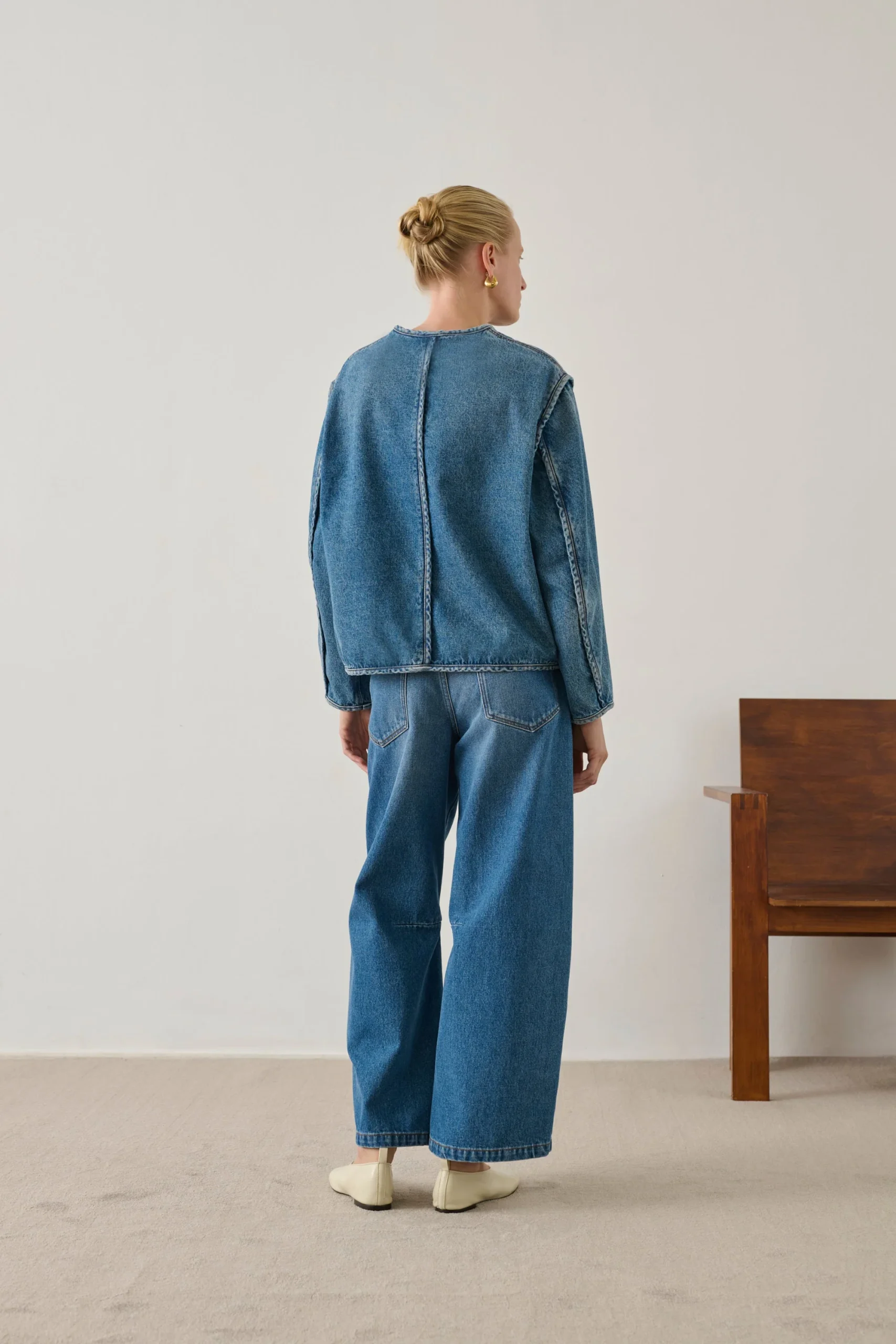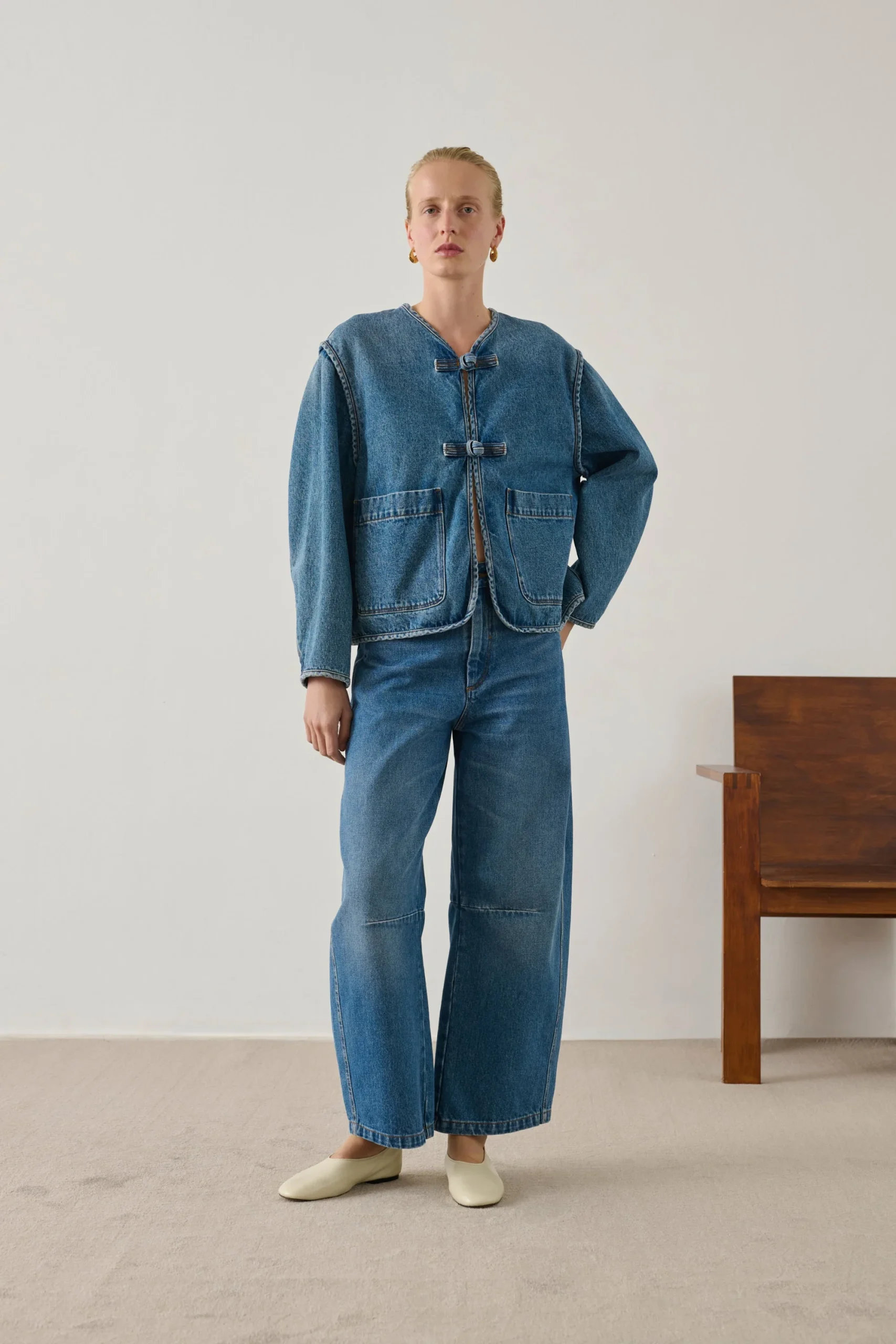 Jeans Eliott (detto anche Helliot) รจ unโicona Soeur dal taglio ampio โballoonโ: gamba arrotondata con pince al ginocchio e lunghezza cropped alla caviglia per slanciare la silhouette.