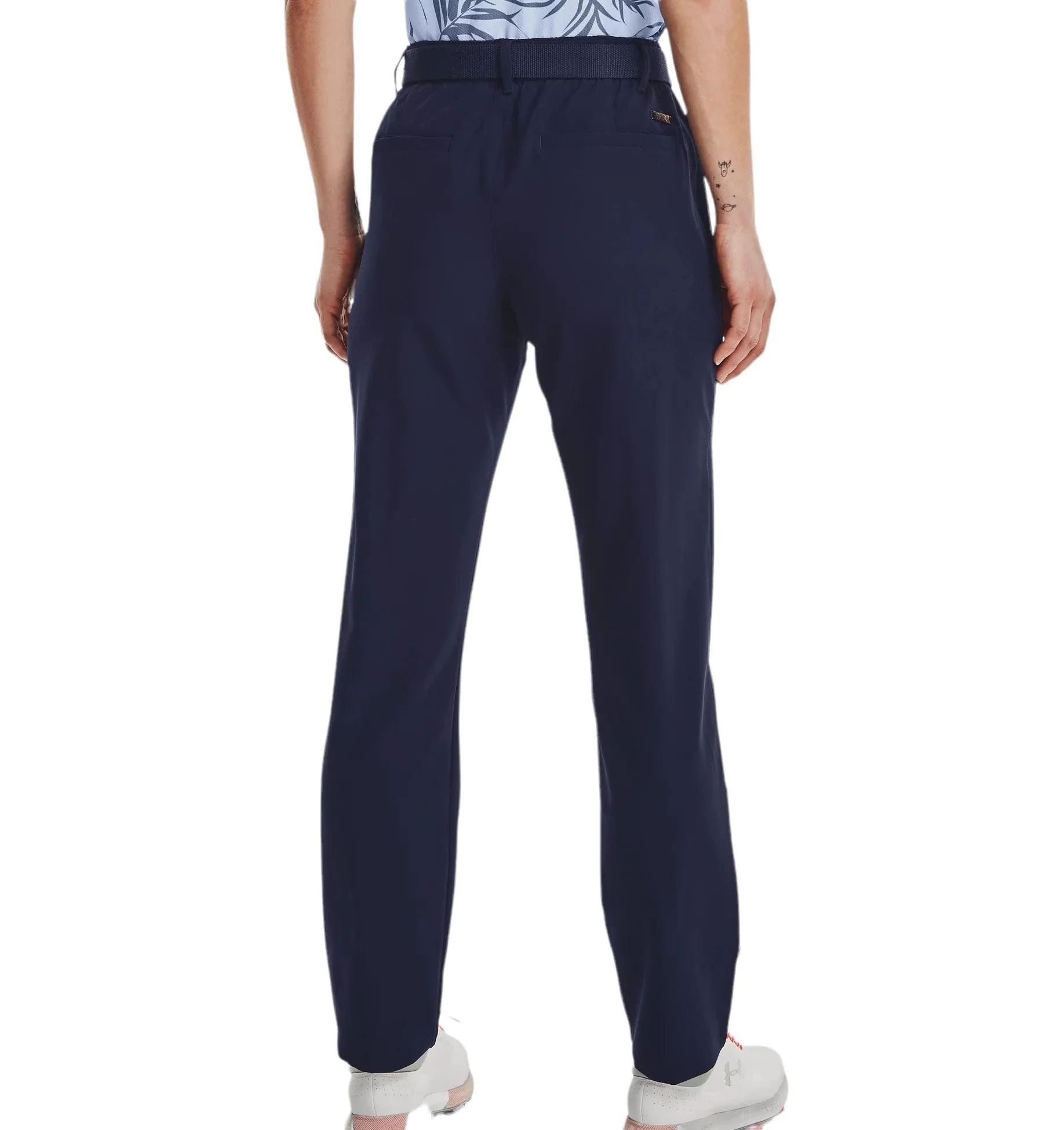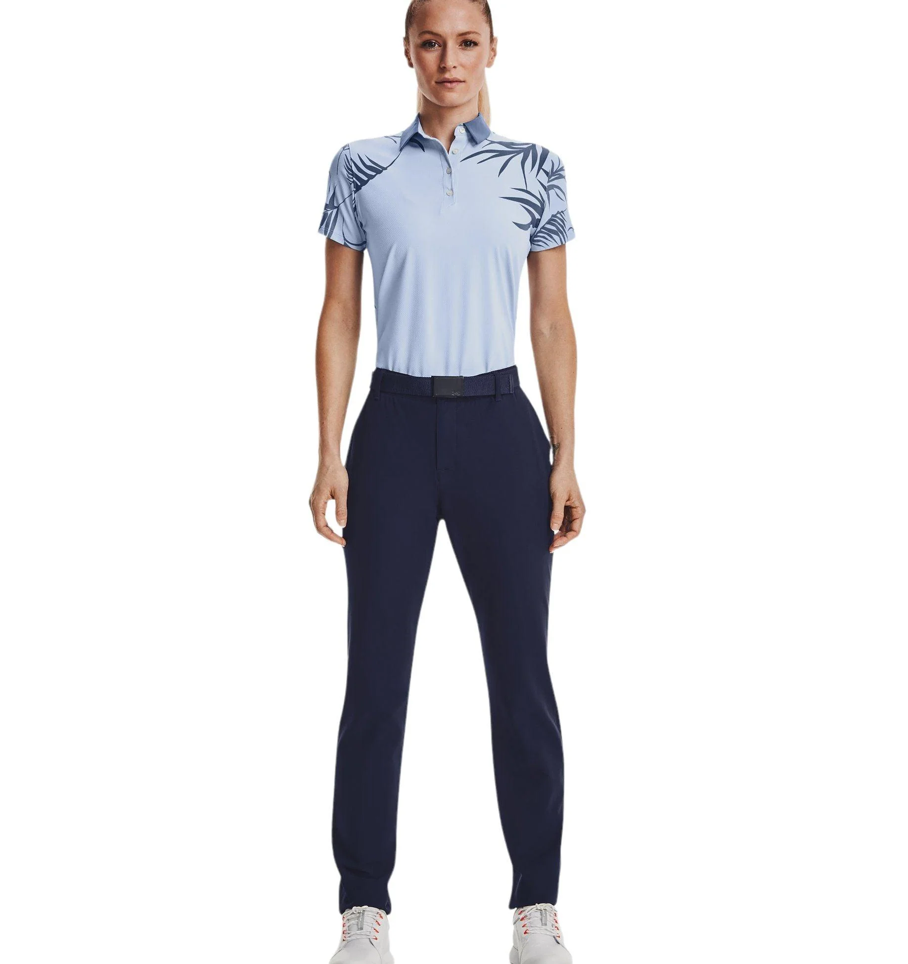 I Pantaloni Links da donna di Under Armour, in colorazione Midnight Navy/Metallic Silver, sono un esempio eccellente di abbigliamento sportivo che combina stile e funzionalità. Realizzati con un tessuto poliestere leggero e flessibile, questi pantaloni offrono un comfort eccezionale e una libertà di movimento ottimale, ideali per il golf o altre attività sportive. La tecnologia UA Storm integrata respinge l’acqua, mantenendo il corpo asciutto senza compromettere la traspirabilità.