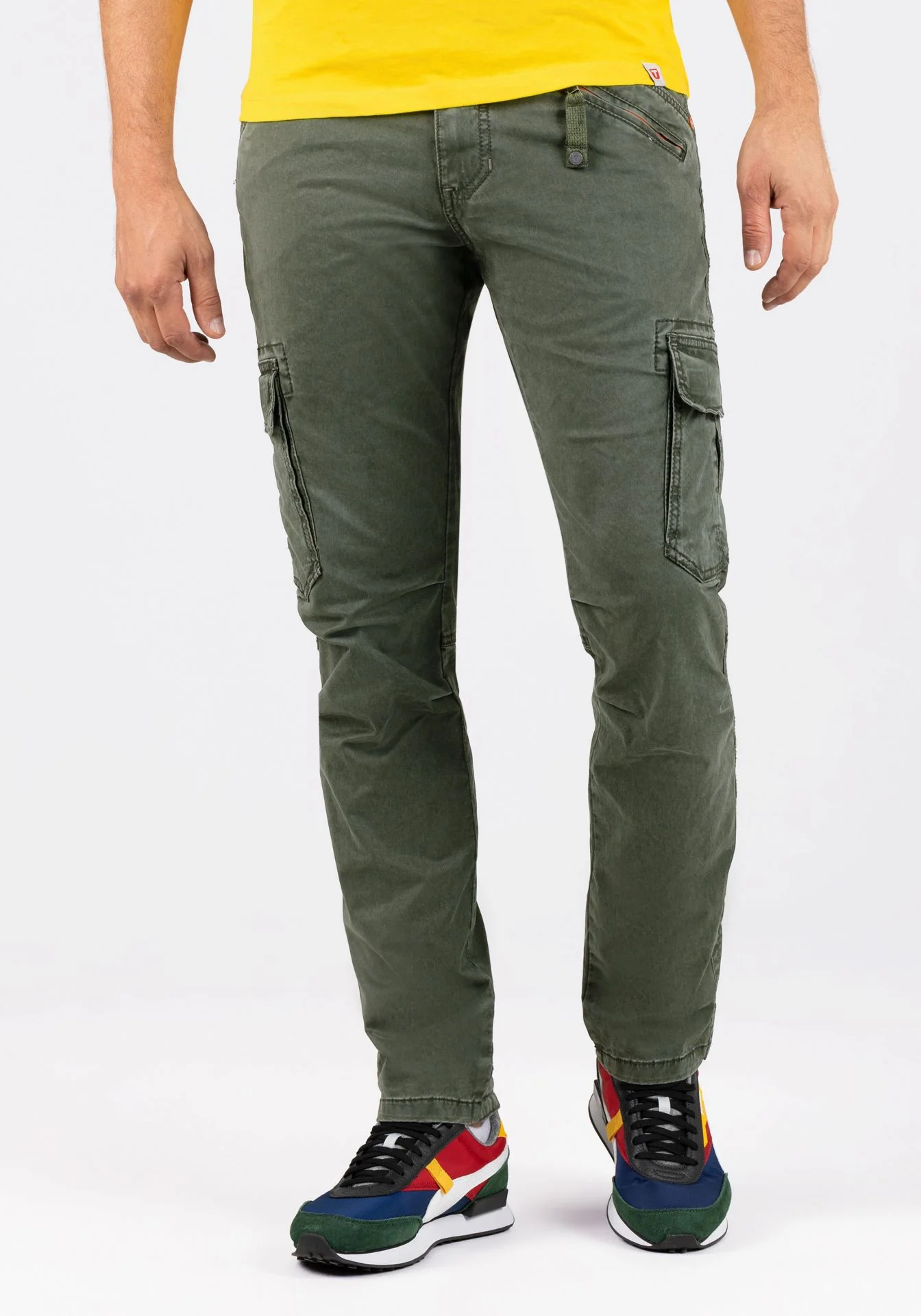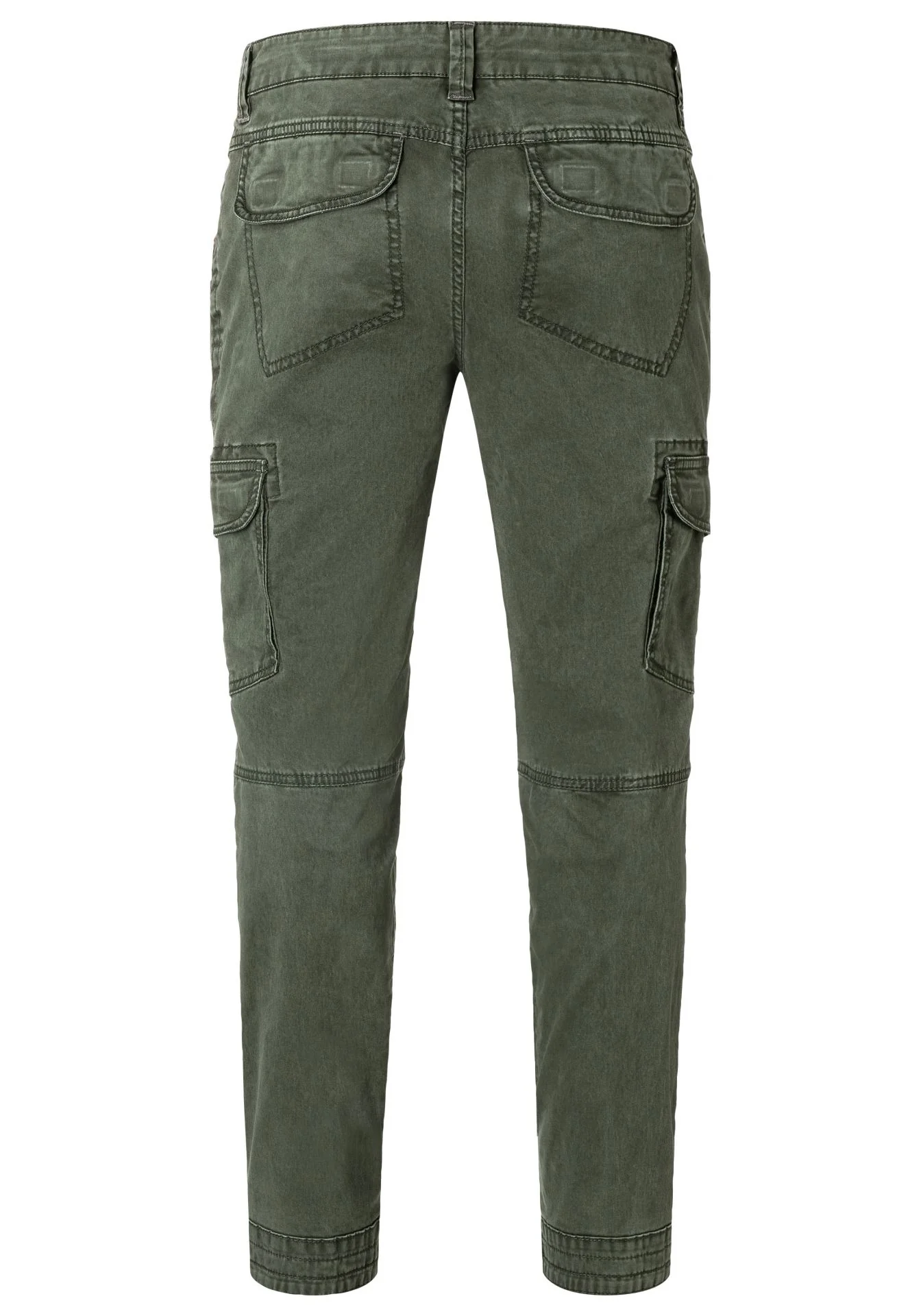 Ispirati all’abbigliamento da lavoro e ridisegnati per l’uso quotidiano: pantaloni cargo. Questo modello è realizzato in twill elastico, robusto e liscio in misto cotone lavato. Con dettagli di lavorazione robusti, cuciture sorprendenti e una sezione del ginocchio sofisticata e leggermente preformata. Pratiche e caratteristiche: due tasche laterali oblique con portamonete, una tasca con cerniera, due tasche cargo con patta sui lati e due tasche con patta trapuntate sul retro.