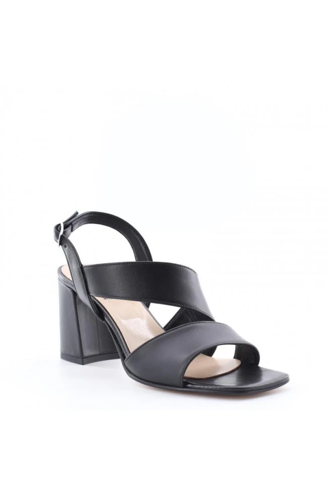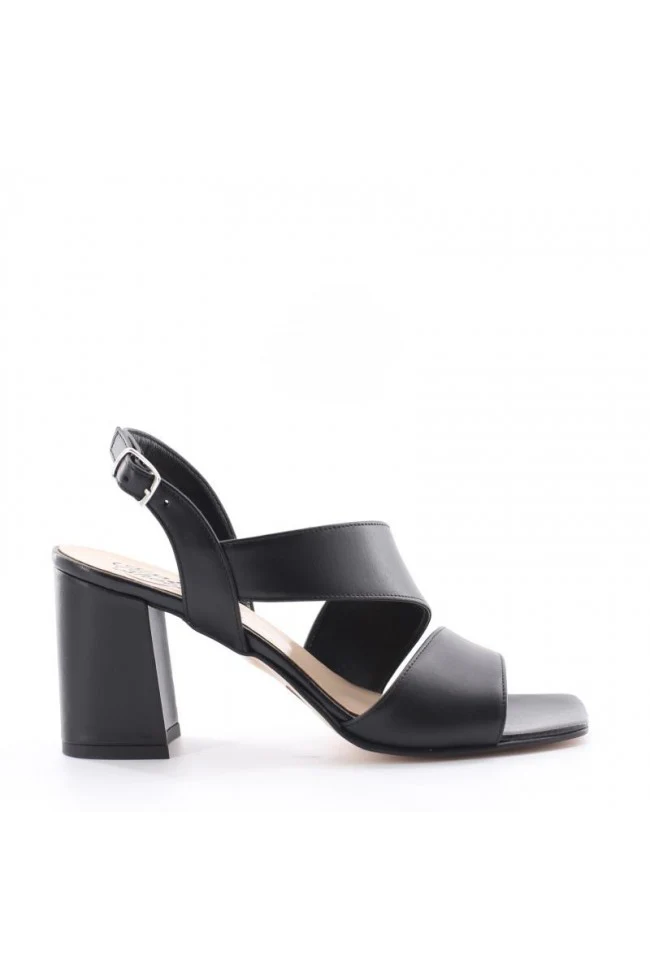 SANDALO DONNA TACCO DOPPIA FASCIA NERO oppure ARGENTO modello 49614 tomaia con doppia fascia e fibbia alla caviglia tomaia in pelle liscia tacco cm7 plantare in pelle