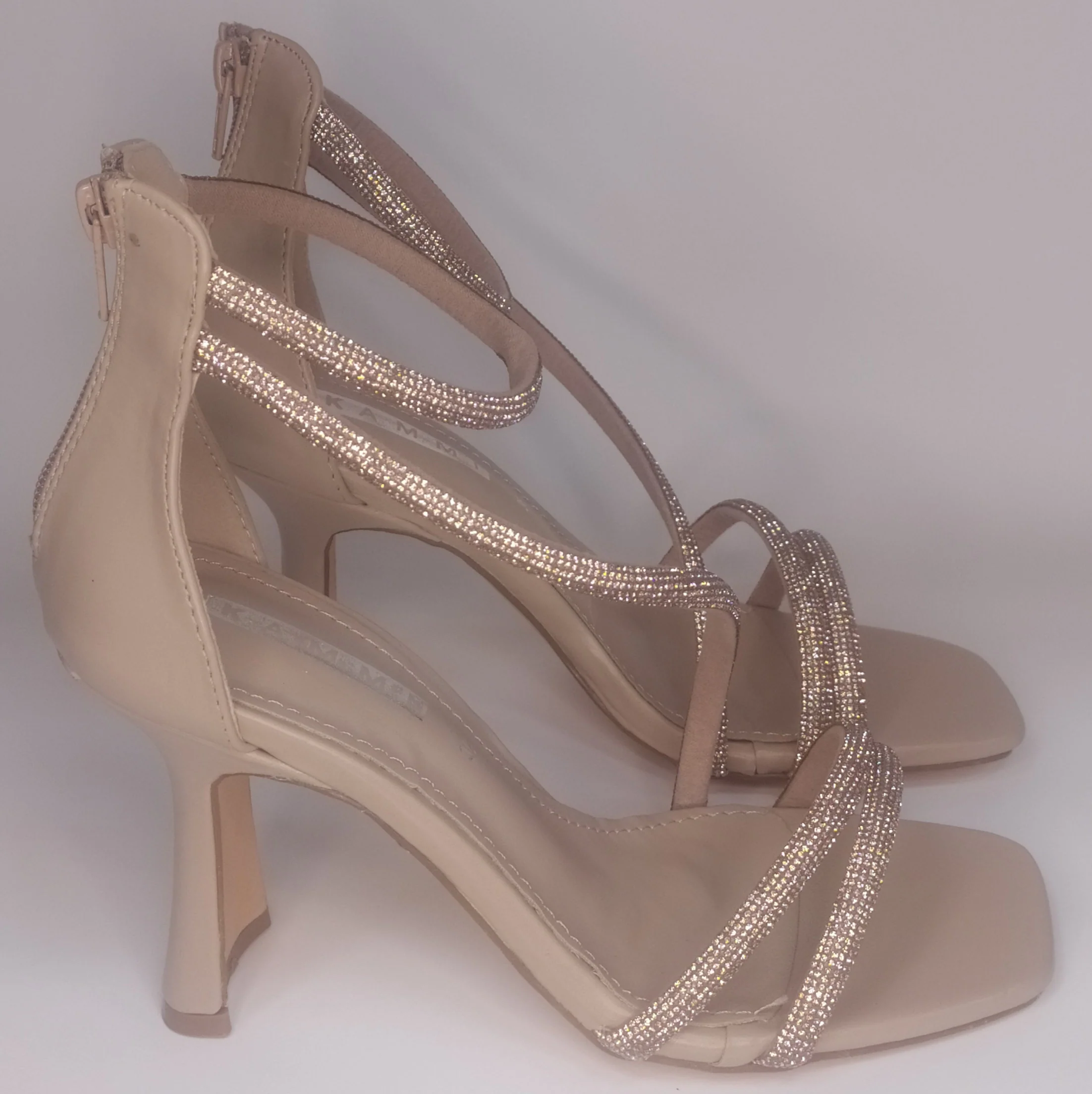 SANDALO NUDE CON TACCO E CINTURINO INCROCIATO CON STRASS 3565 – Colore: nude– Materiale: ecopelle– Fodera: ecopelle– Altezza suola: 90mm– Fondo: gomma– Chiusura: zip posteriore– Sottopiede: imbottito– Calzata: ampia– Dettagli: applicazione di strass, punta e tacco squadrato.