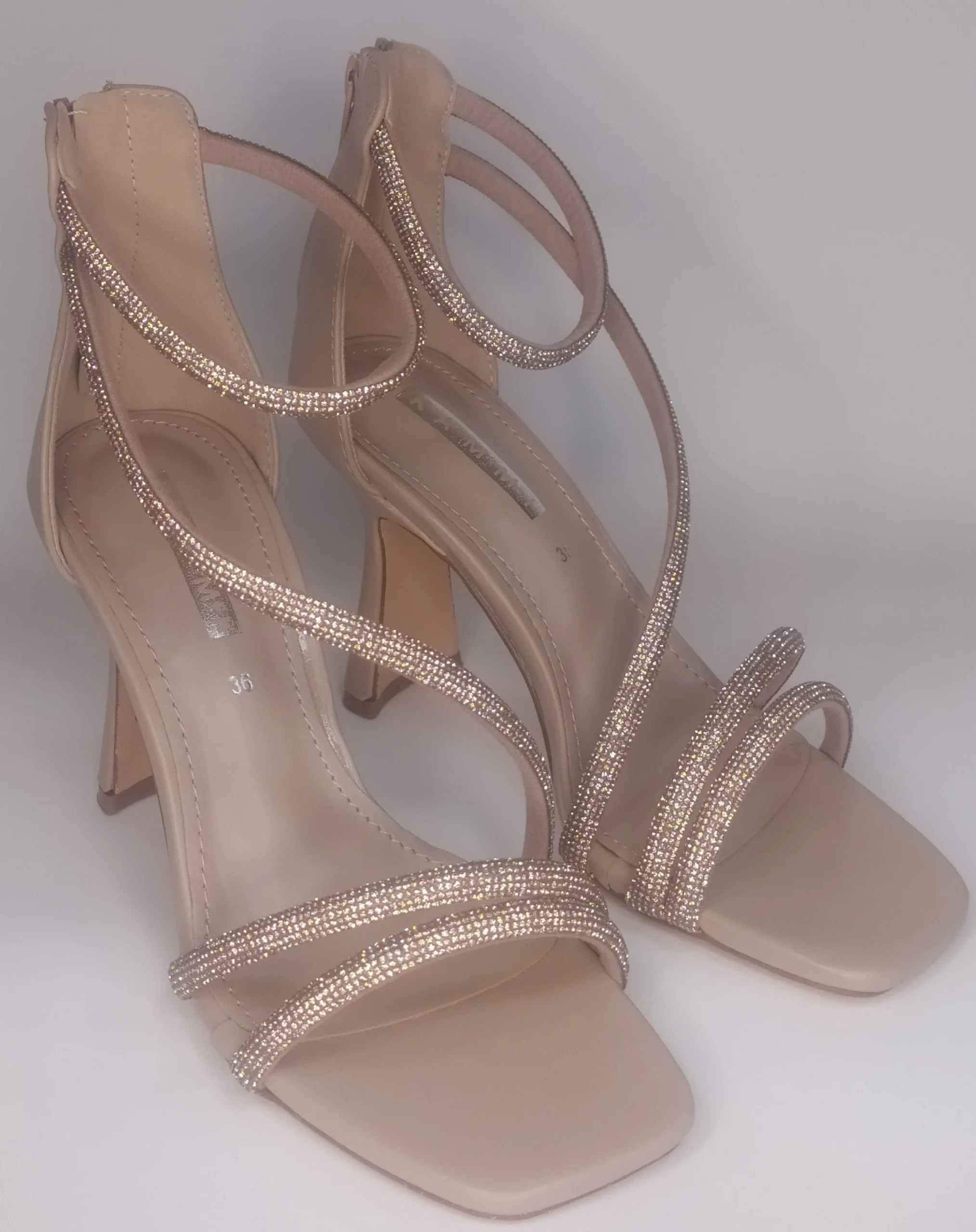 SANDALO NUDE CON TACCO E CINTURINO INCROCIATO CON STRASS 3565