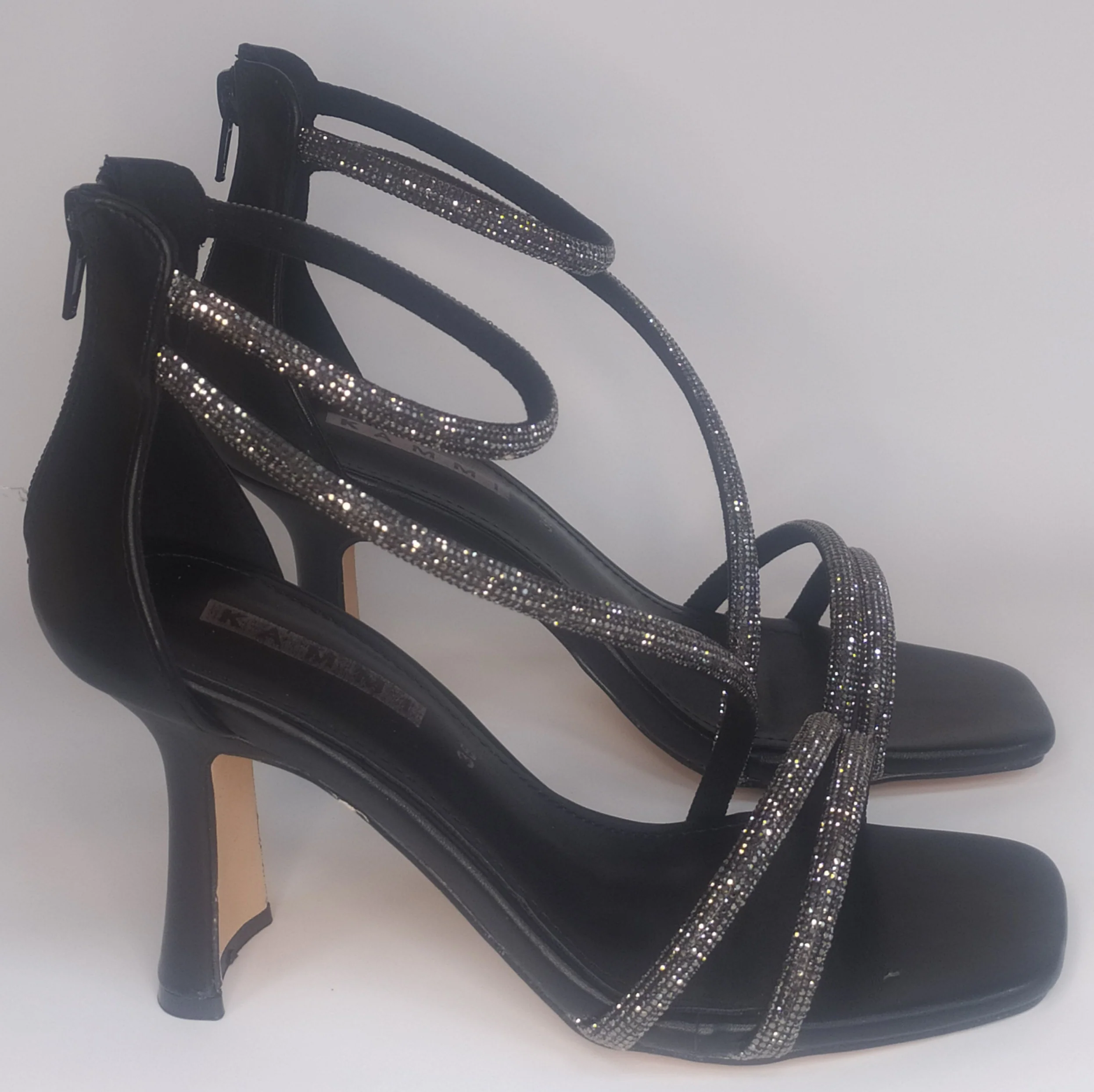 – Dettagli: applicazione di strass, punta e tacco squadrato.