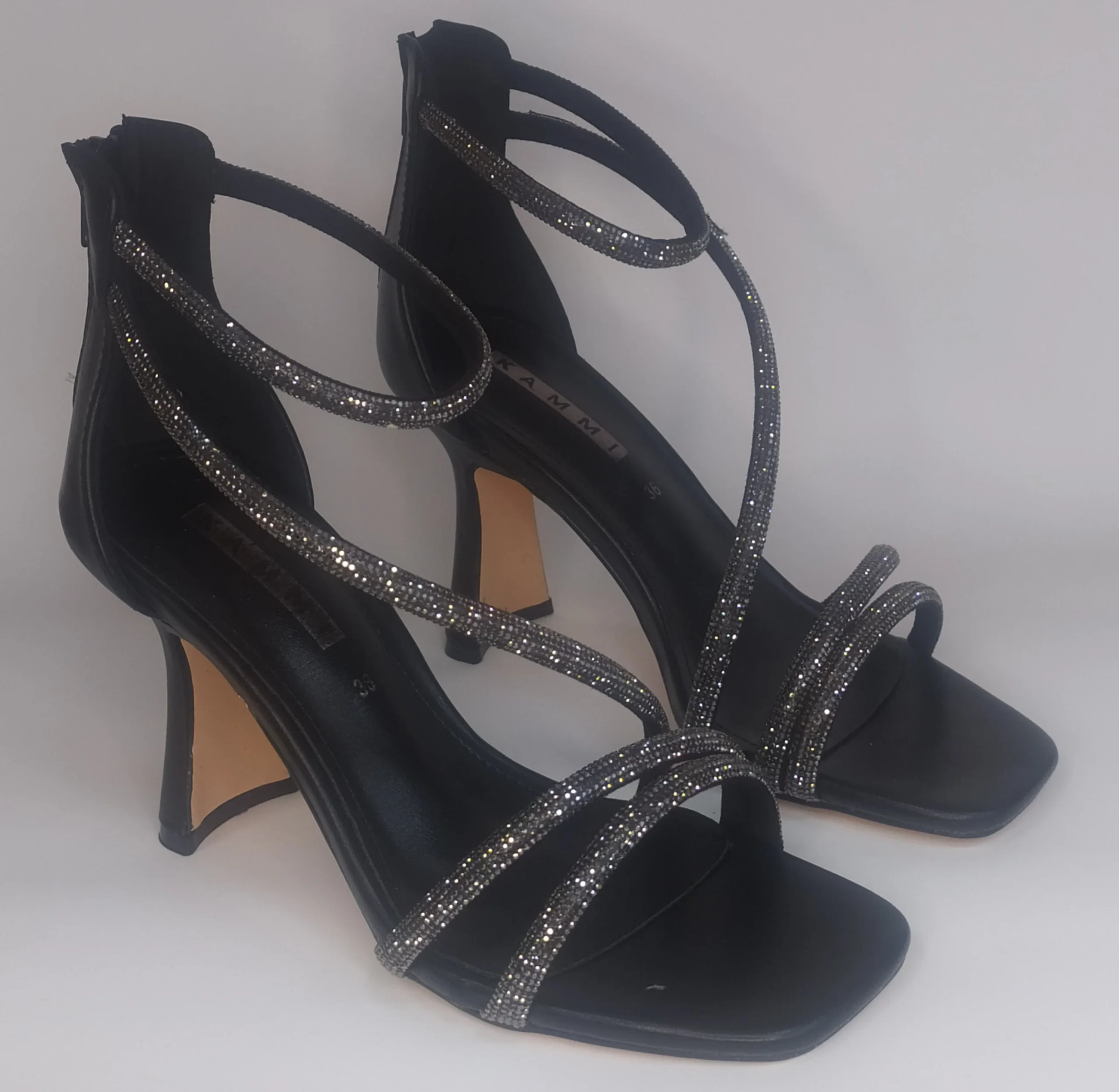 SANDALO NERO CON TACCO E CINTURINO INCROCIATO CON STRASS 3565