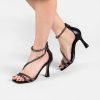 SANDALO NERO CON TACCO E CINTURINO INCROCIATO CON STRASS 3565 – Colore: nero– Materiale: ecopelle– Fodera: ecopelle– Altezza suola: 90mm– Fondo: gomma– Chiusura: zip posteriore– Sottopiede: imbottito– Calzata: ampia– Dettagli: applicazione di strass, punta e tacco squadrato.