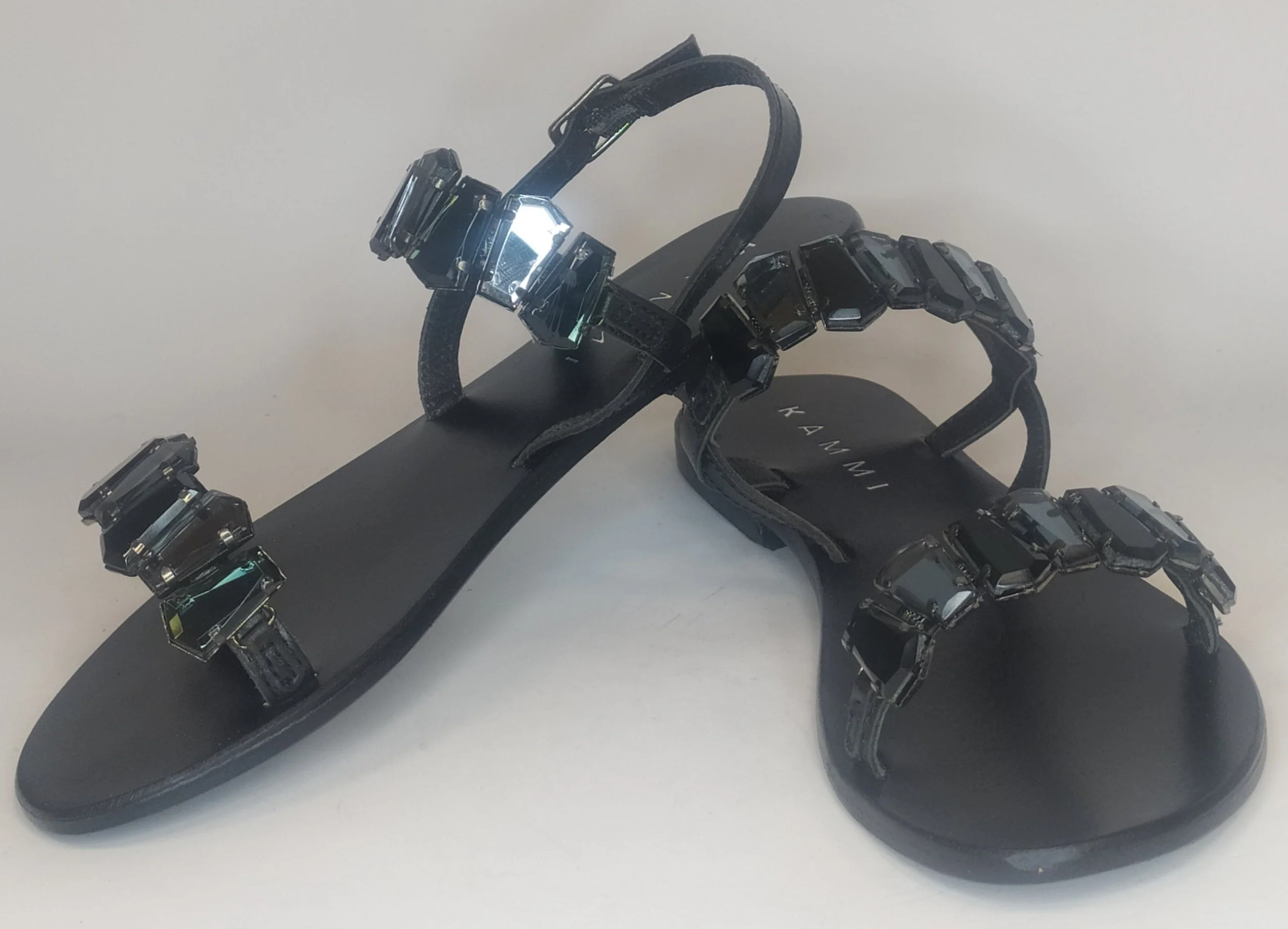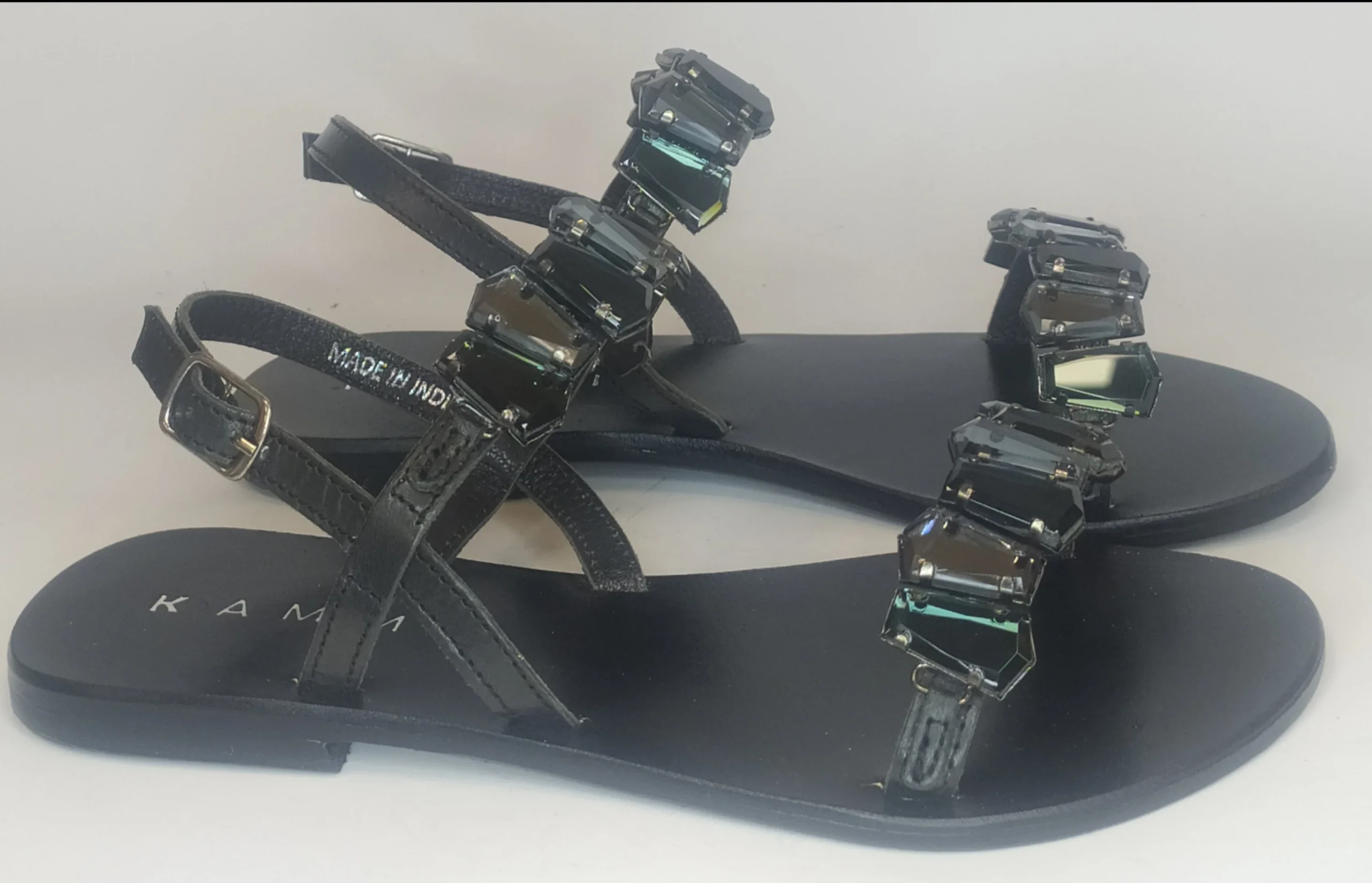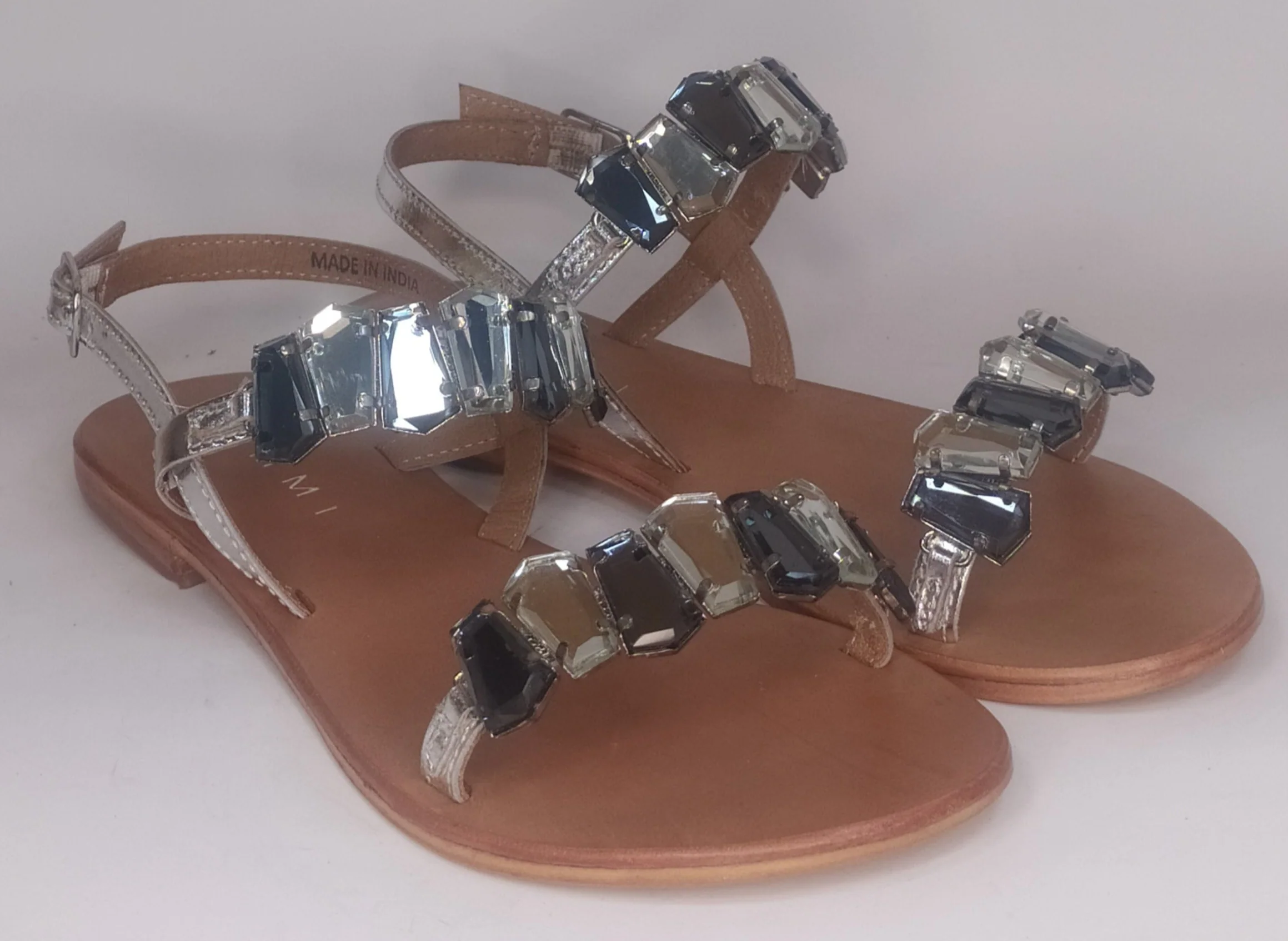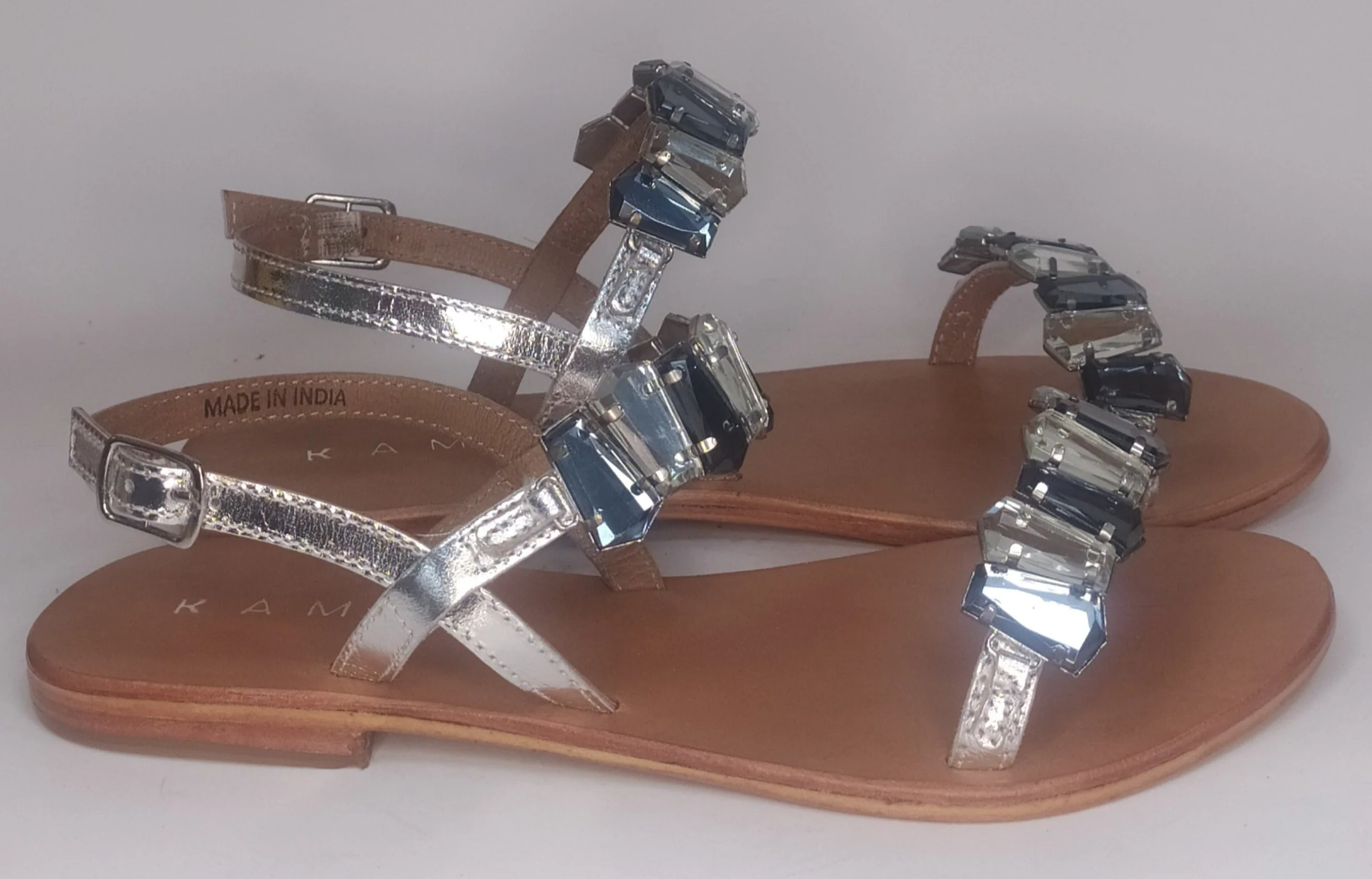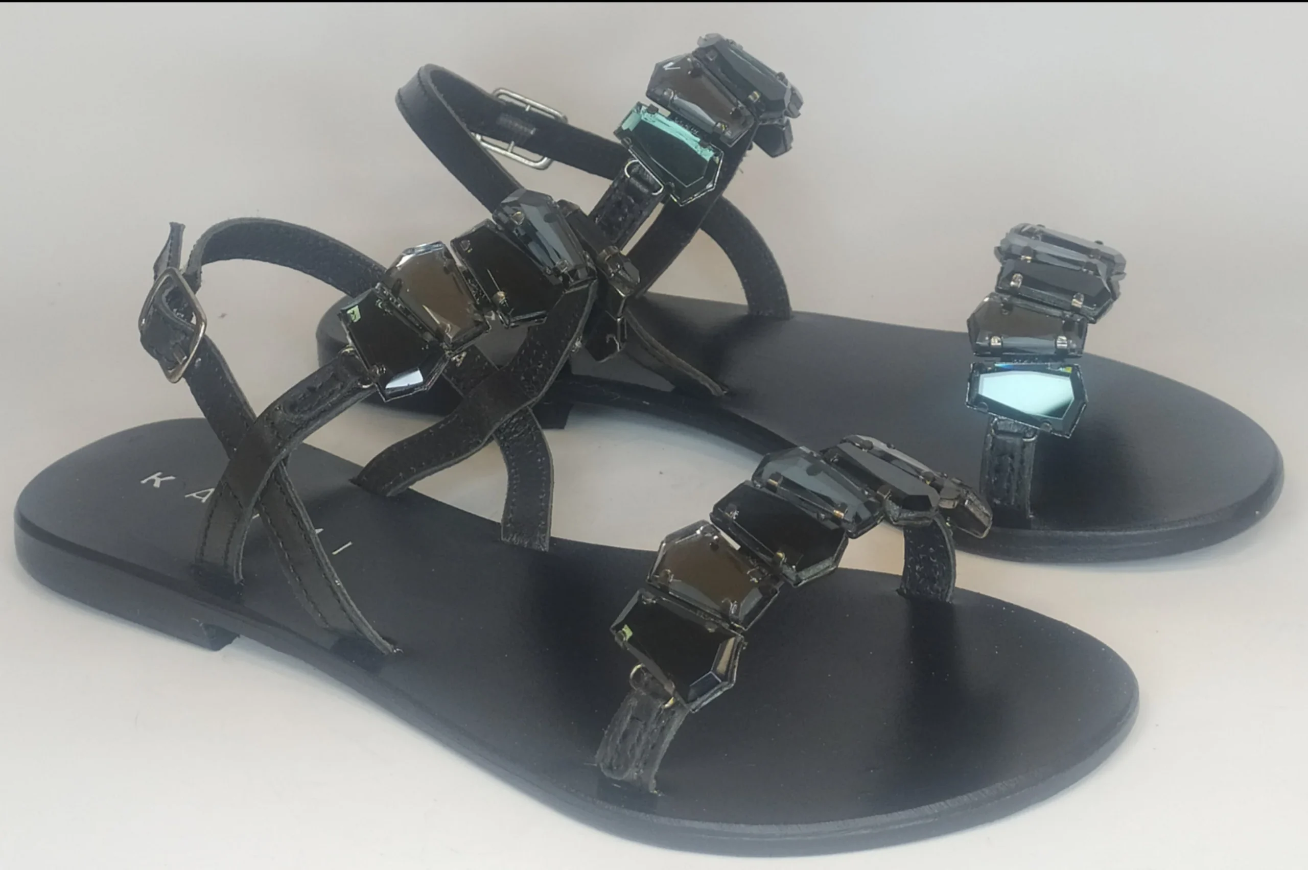 Sandalo gioiello con due cinturini interamente in pelle rivestiti di strass