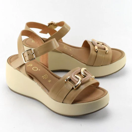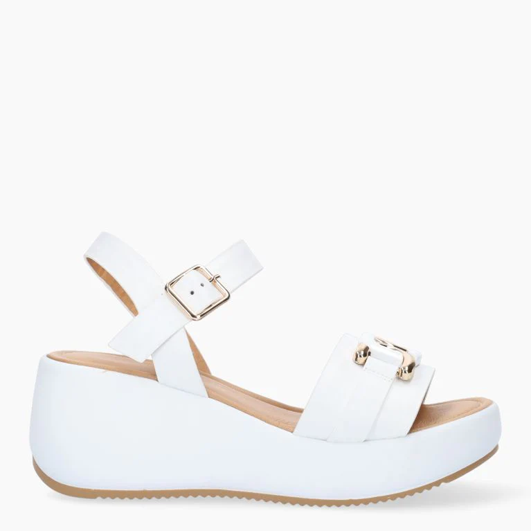 SANDALO DONNA MODELLO ZEPPA BIANCO CON FIBBIA ORO/BIANCO 12229 OPPURE BEIGE CON FIBBIA BEIGE/ORO 13229 TOMAIA IN PELLE CINTURINO ALLA CAVIGLIAMODELLO CON FASCIA E FIBBIA APPLICATAFODERA IN PELLEPLANTARE MORBIDO IN PELLETACCO 6 CM