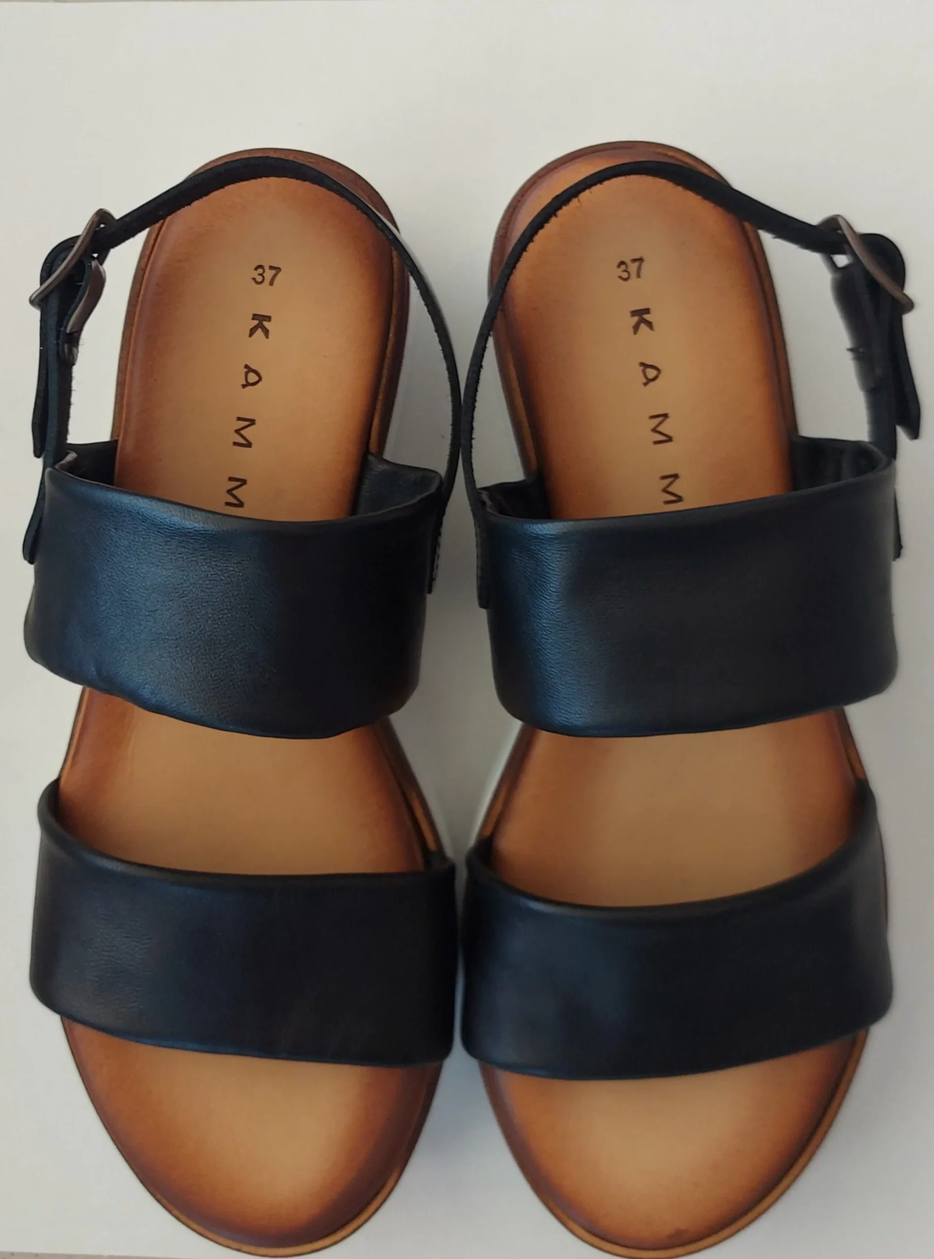 Sandalo Donna modello con doppia fascia e cinghietto dietro disponibile nel colore nero altezza cm 4 plantare in morbida pelle suola in gomma
