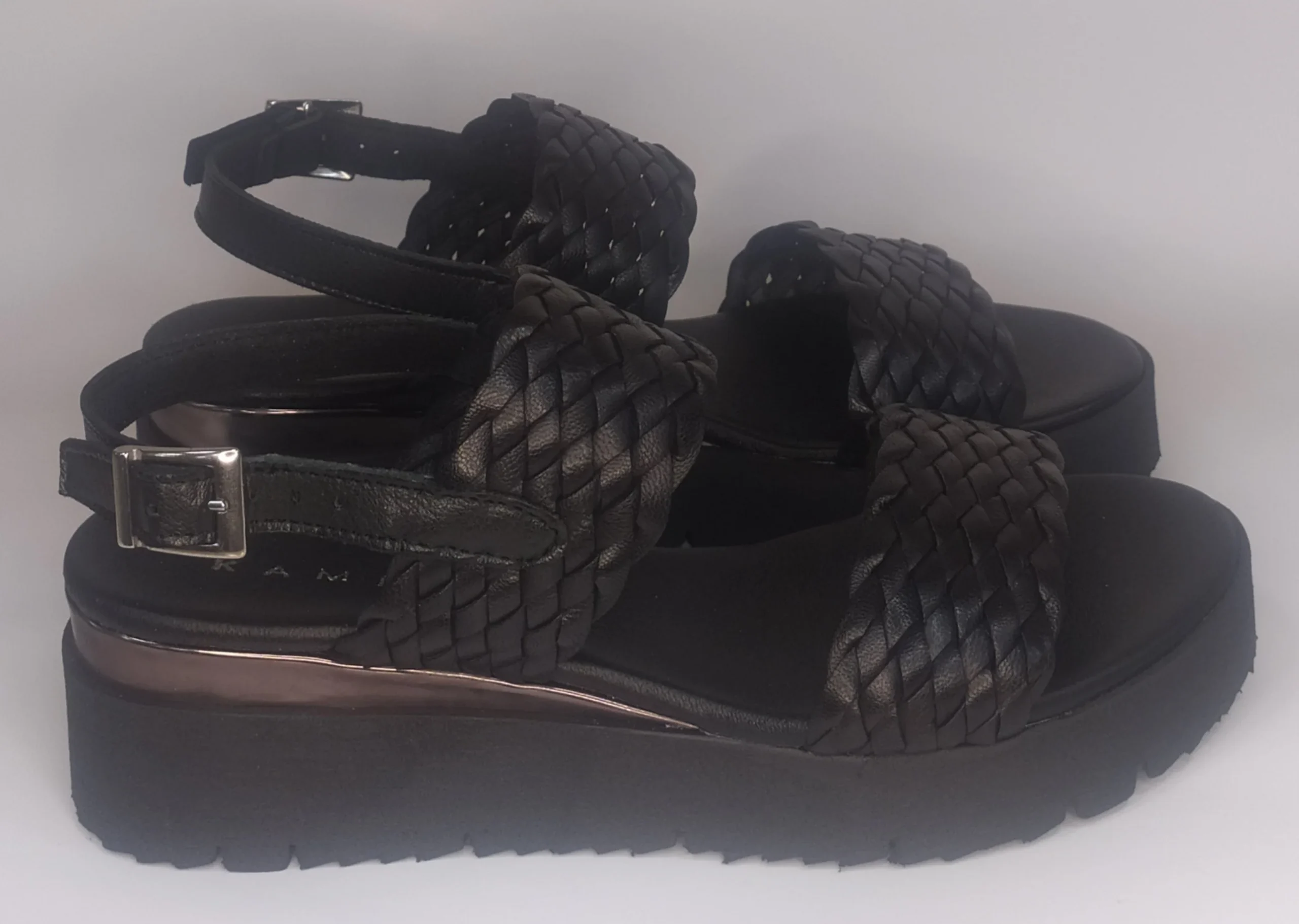 Sandalo in pelle intrecciata bianca o nero con soletta in morbida pelle e zeppa in gomma modello 76926 Tacco: 3.5 cmMateriale esterno: PelleMateriale interno: PelleMateriale suola: Sintetico
