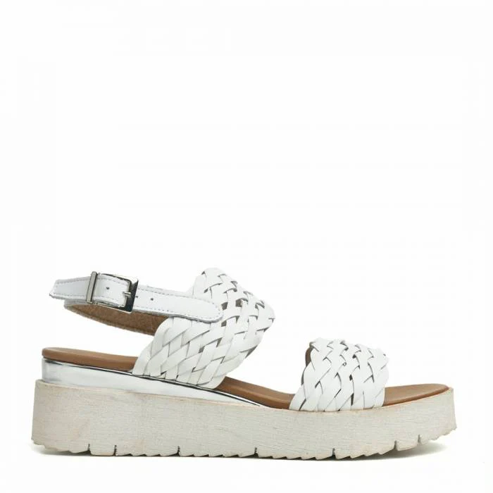 Sandalo in pelle intrecciata bianca o nero con soletta in morbida pelle e zeppa in gomma