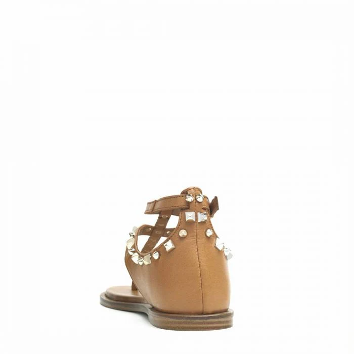 Sandalo infradito color cuoio arricchito da borchiette sui cinturini