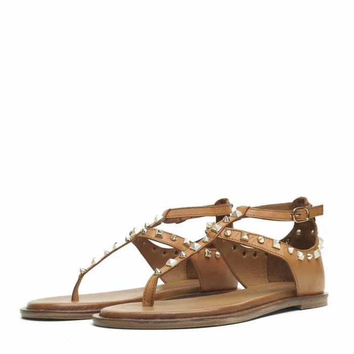 Sandalo infradito color cuoio arricchito da borchiette sui cinturini Tacco: 1 cmMateriale esterno: PelleMateriale interno: SinteticoMateriale suola: Sintetico