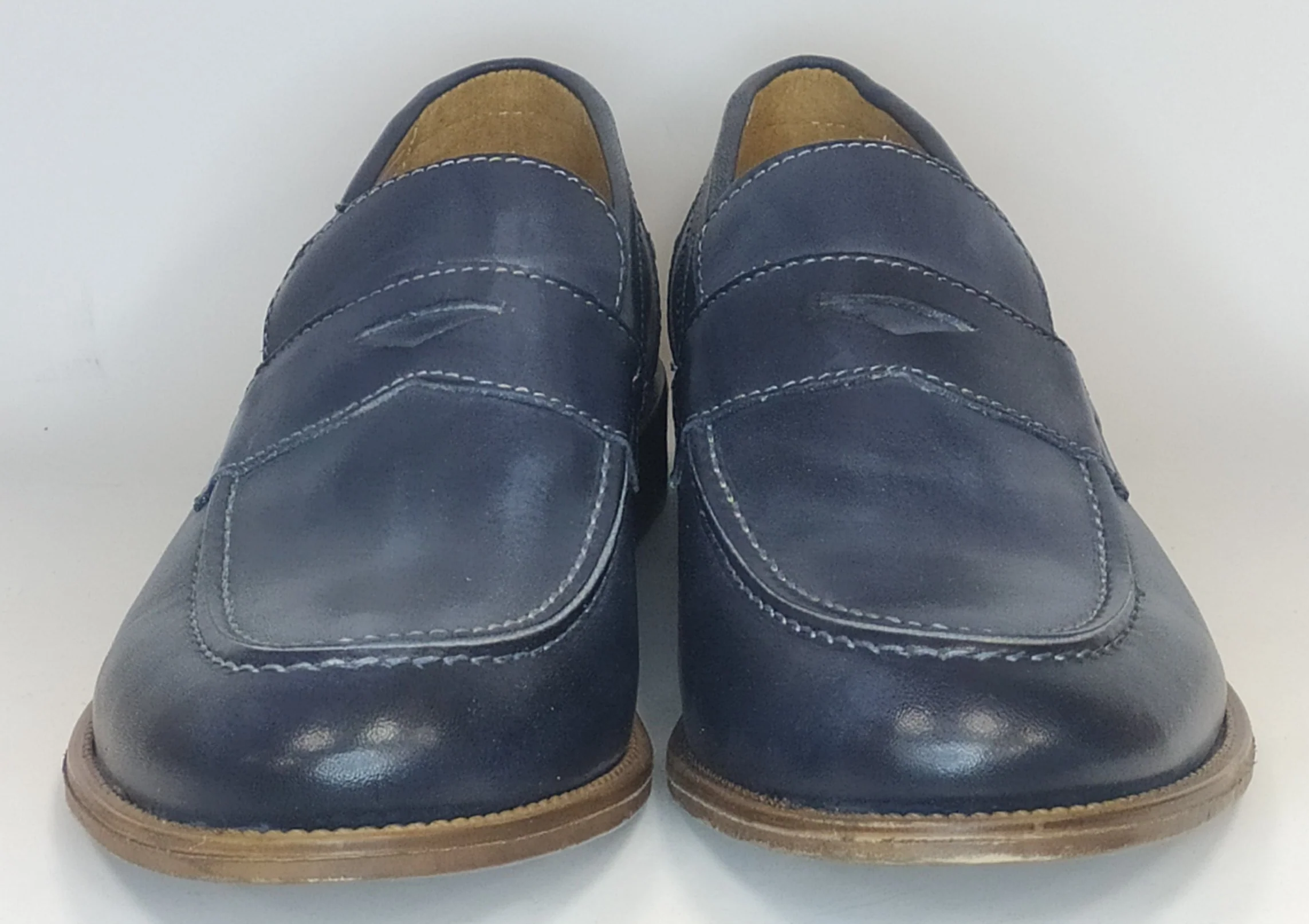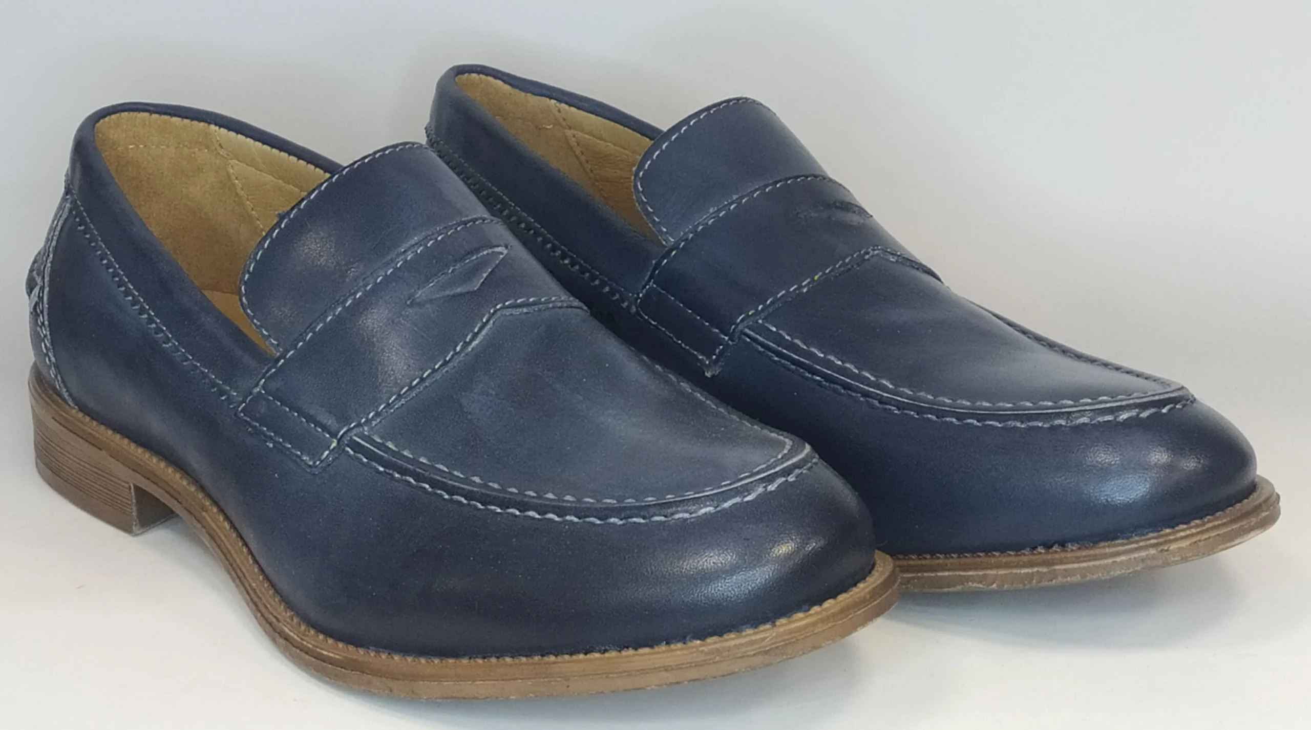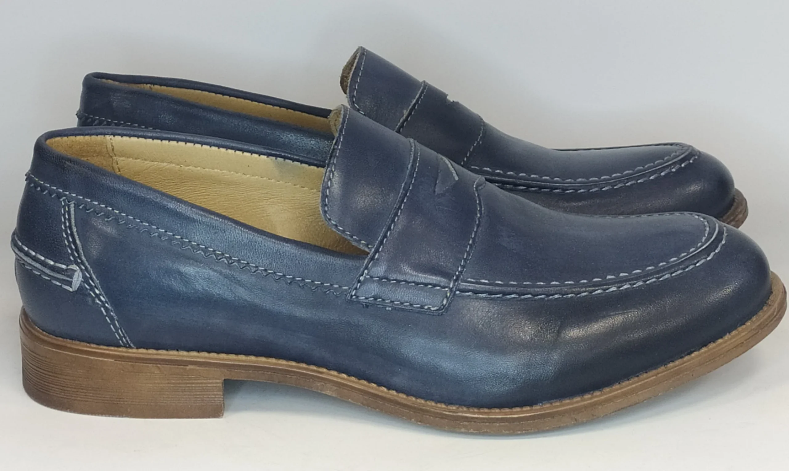 Mocassino uomo blu pelle con cuciture a contrasto