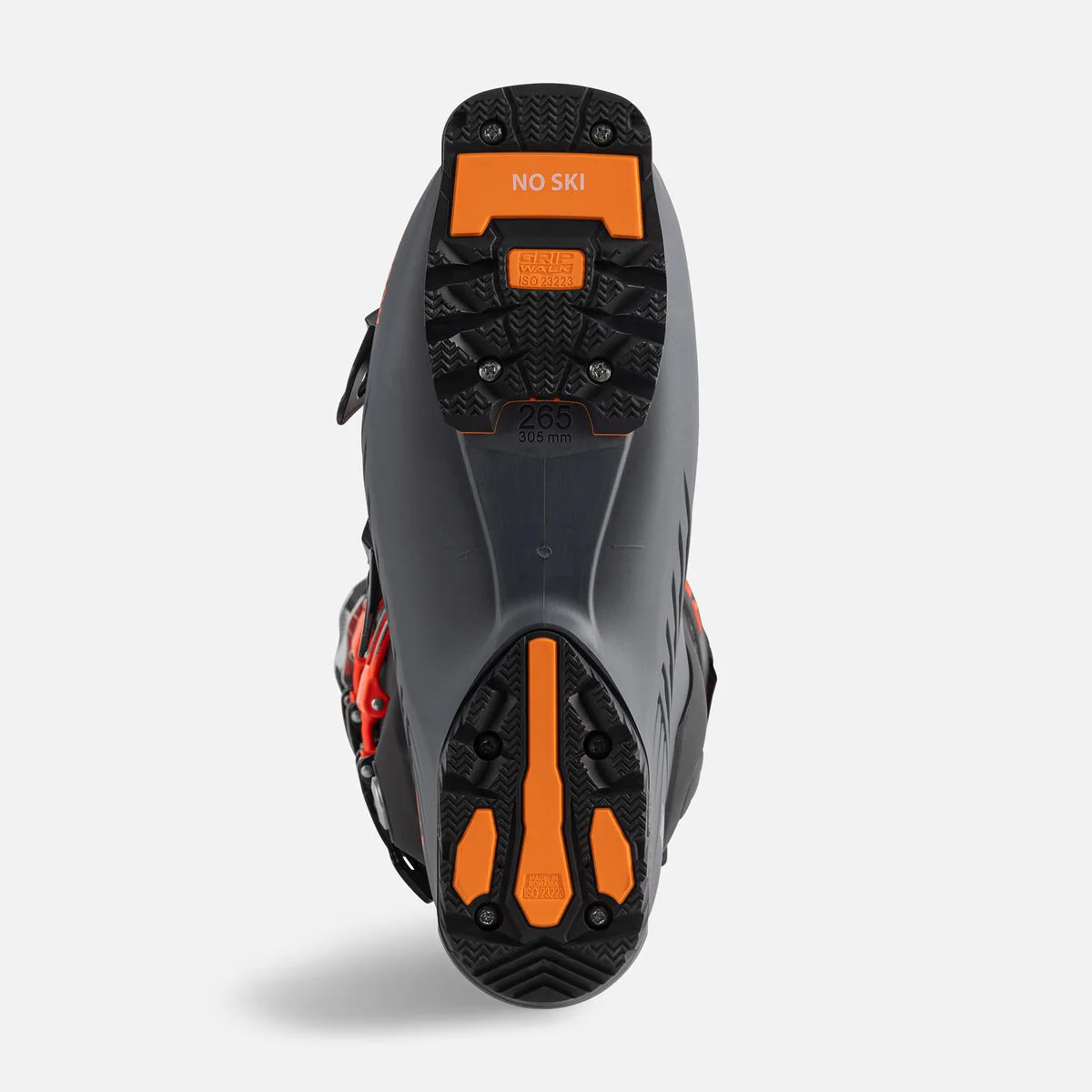 La suola GRIPWALKยฎ premontata presenta un battistrada in gomma e un rocker in punta per una camminata piรน naturale e una migliore aderenza