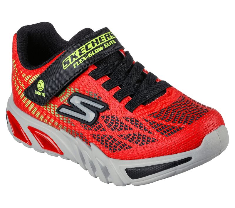 Luci, ammortizzazione e look sportivi si fondono con le Skechers S-Lights® Flex-Glow Elite – Vorlo. Questo modello dinamico presenta una tomaia in mesh sfumato con applicazioni in materiale tecnico, una chiusura con lacci elasticizzati, un cinturino sul collo del piede e un’intersuola luminosa ammortizzante.