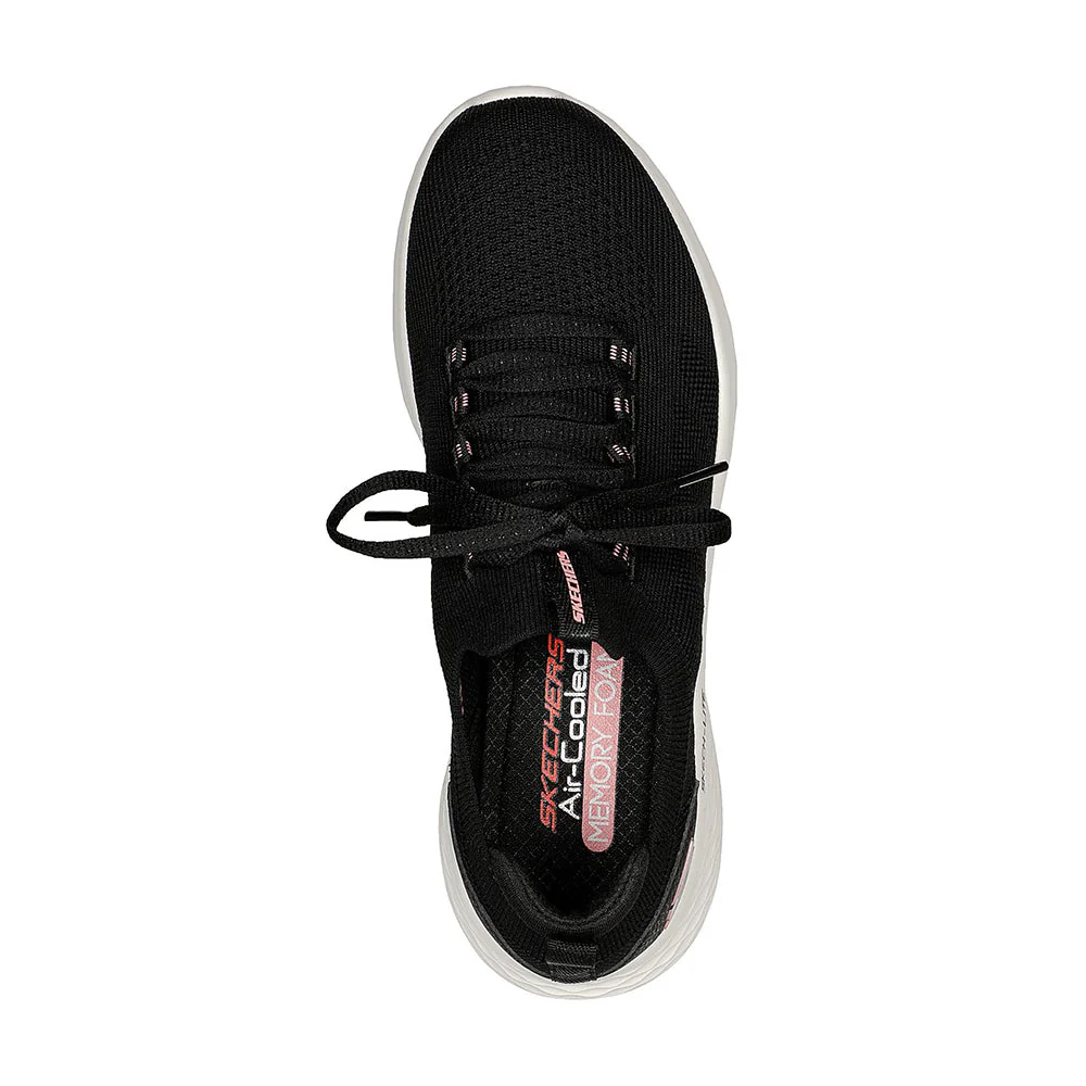 Scegli il comfort extra della Skechers Skech-Lite Pro – Full Night. Questo modello vegano presenta una tomaia in mesh Stretch Fit® con lacci fissi e una soletta ammortizzata Skechers Air Cooled Memory Foam®.