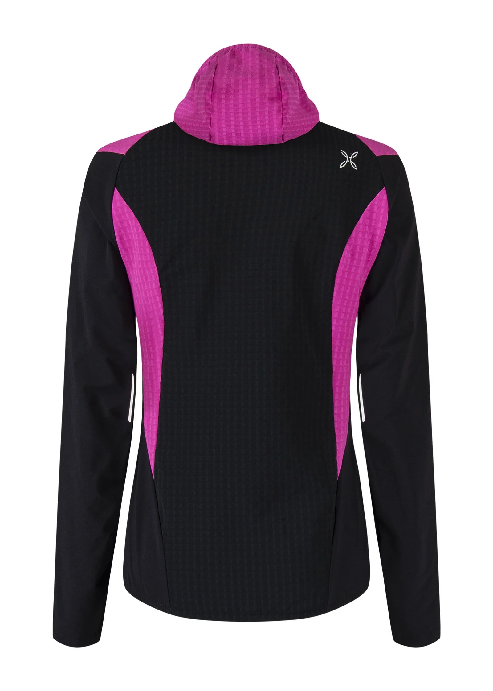 Il softshell tecnico da donna Montura Ski Style 2 Jacket Woman presenta chiusura con cerniera frontale, tasche mani con zip, tasca pettorale con zip, tasche interne aperte, cappuccio e fondo rifiniti con elastico e protezione dai raggi solari ANTIUV: UPF50+.