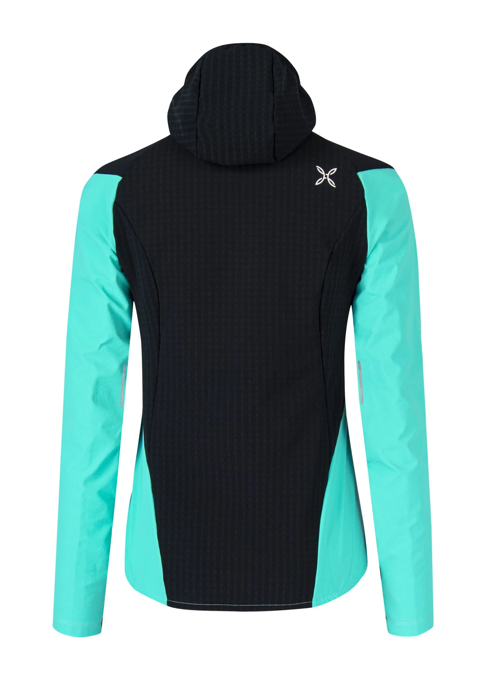 Questa giacca tecnica da scialpinismo da donna presenta dei pannelli in contrasto in tessuto elasticizzato con costruzione ibrida che protegge dall’aria e respinge l’acqua mentre la morbida struttura grid interna offre morbidezza, calore e comfort e inoltre riesce ad allontanare il sudore verso l’esterno per una più rapida evaporazione.
