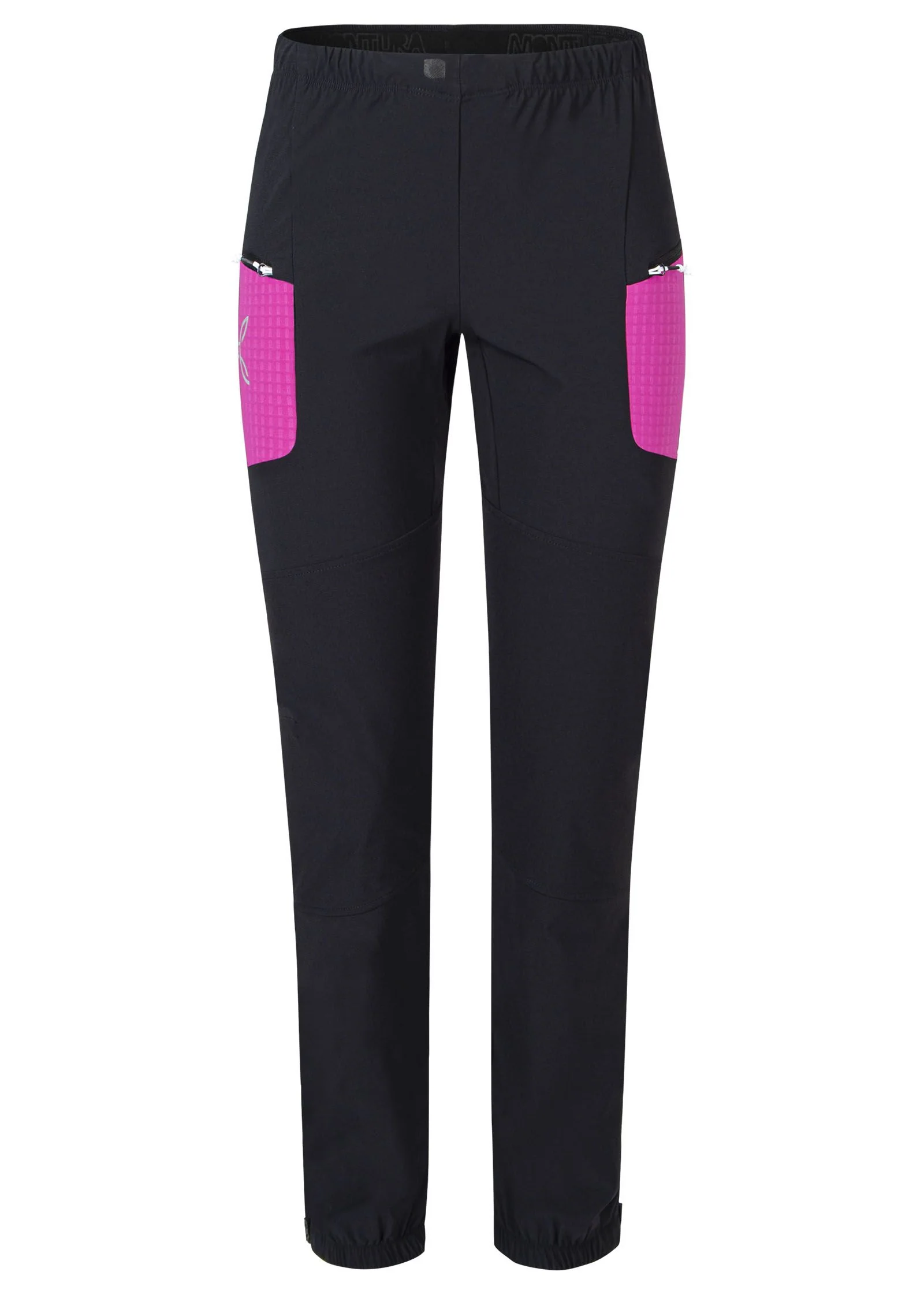 Pantaloni lunghi da donna da trekking e scialpinismo. Idrorepellenti, antivento e traspiranti, pensati per attività dinamiche in clima freddo.