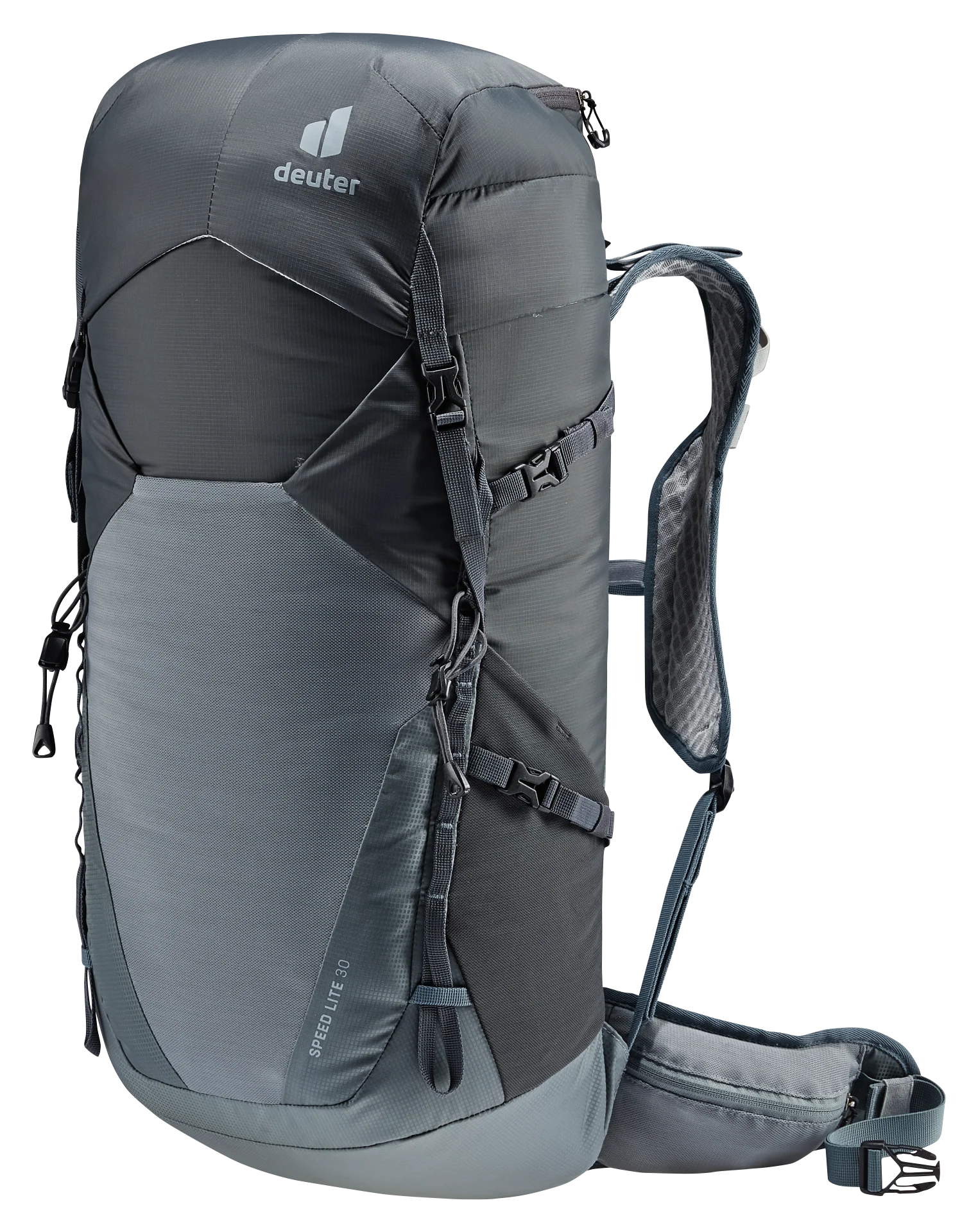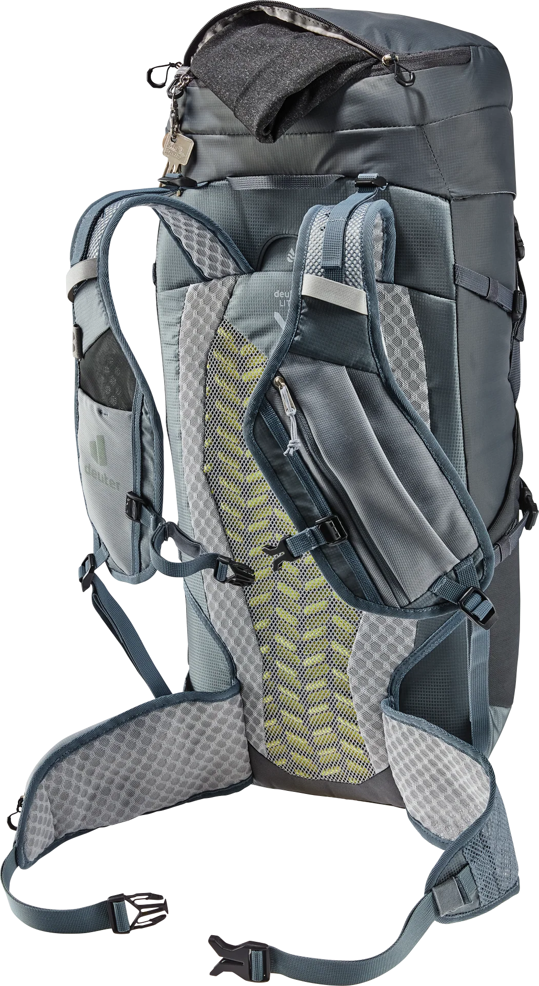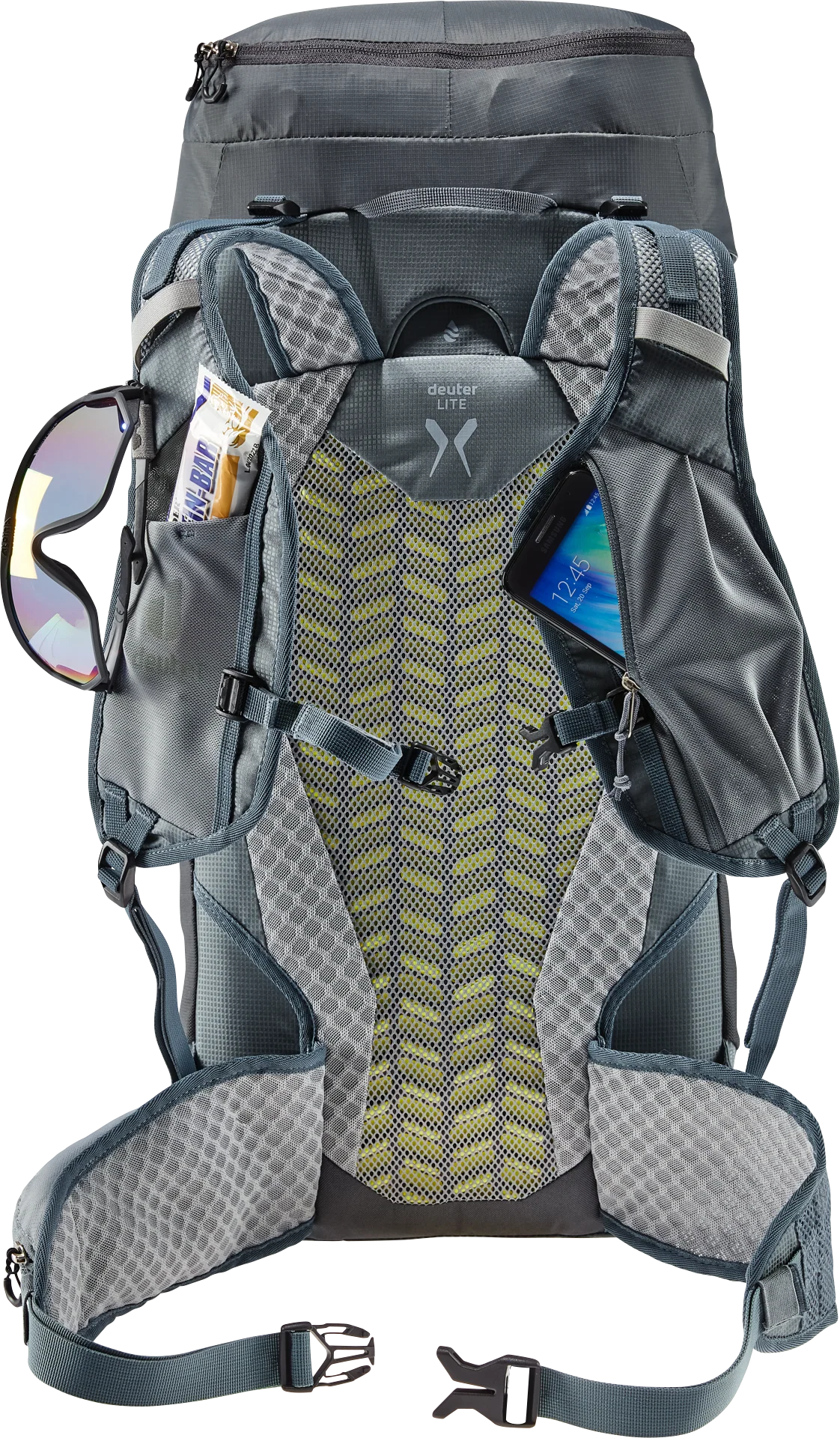Leggero, veloce e sostenibile in montagna grazie al collaudato sistema di trasporto Lite, agli spallacci perforati a forma di gilet, alle comode alette per i fianchi, alla cinghia pettorale regolabile in continuo e al materiale principale 100% riciclato e certificato bluesign®. Inoltre, le cinghie di compressione laterali riducono al minimo il movimento su e giù del carico durante la corsa, garantendo così una libertà di movimento illimitata. La tasca integrata nella tracolla offre abbastanza spazio per tutto ciò che deve essere a portata di mano, mentre l’ampio scomparto con zip del coperchio può essere utilizzato per attrezzature più grandi.