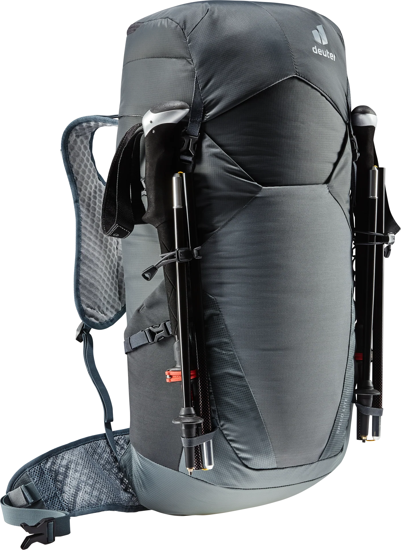 Leggero, veloce e sostenibile in montagna grazie al collaudato sistema di trasporto Lite, agli spallacci perforati a forma di gilet, alle comode alette per i fianchi, alla cinghia pettorale regolabile in continuo e al materiale principale 100% riciclato e certificato bluesign®. Inoltre, le cinghie di compressione laterali riducono al minimo il movimento su e giù […]