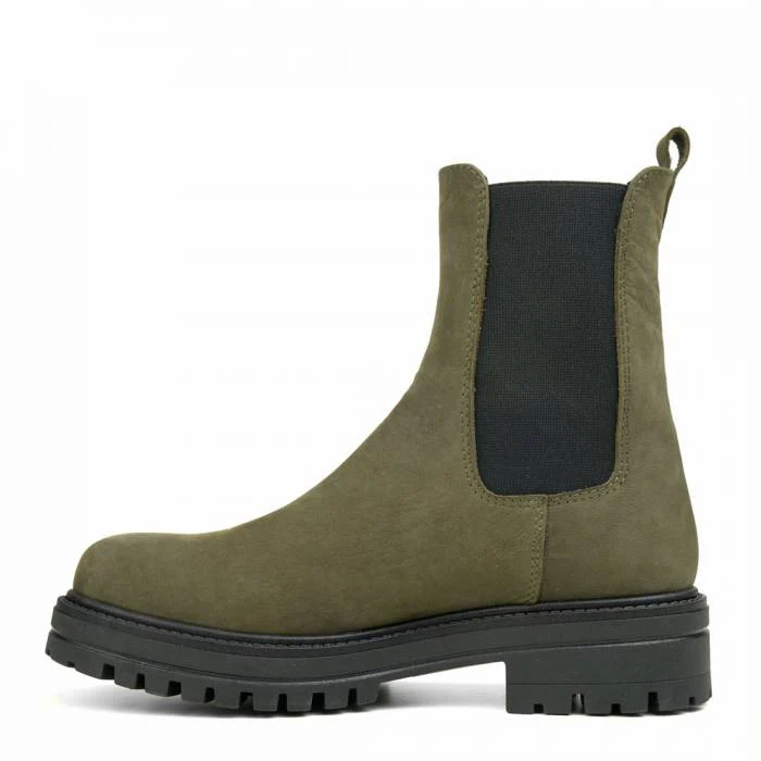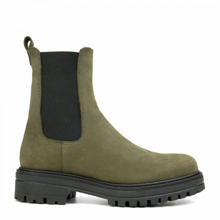 Beatles Donna Pelle Tortora O Verde Militare Con Finitura NabukTomaia In Pelle Con Elastico Laterale Suola in gomma modello AO716